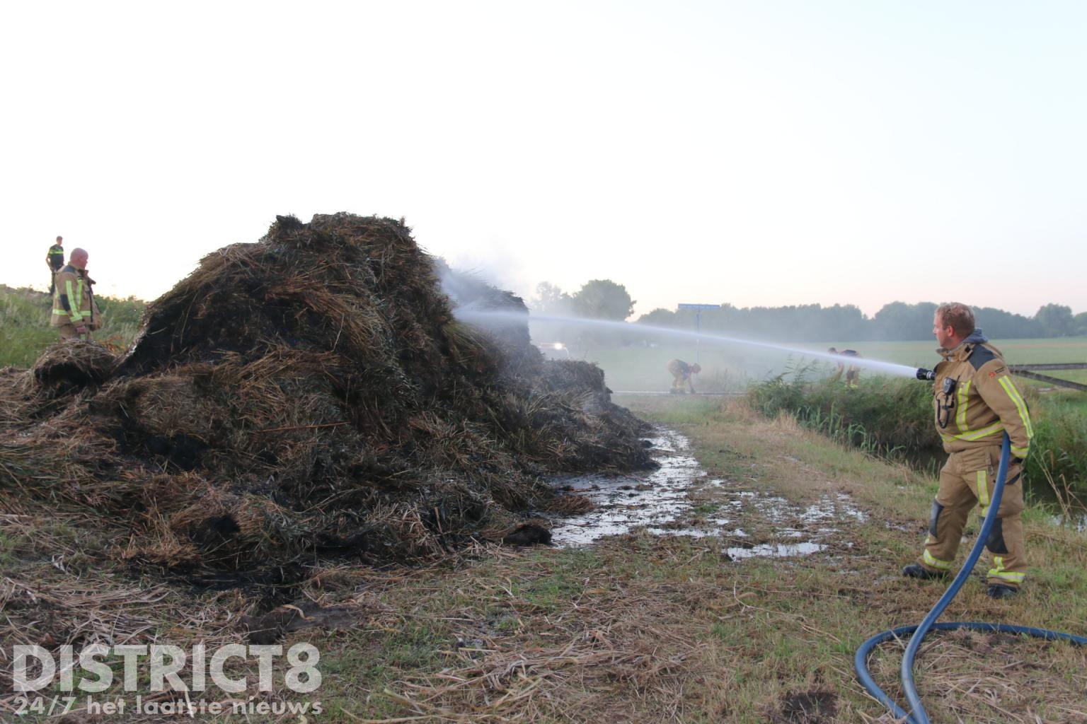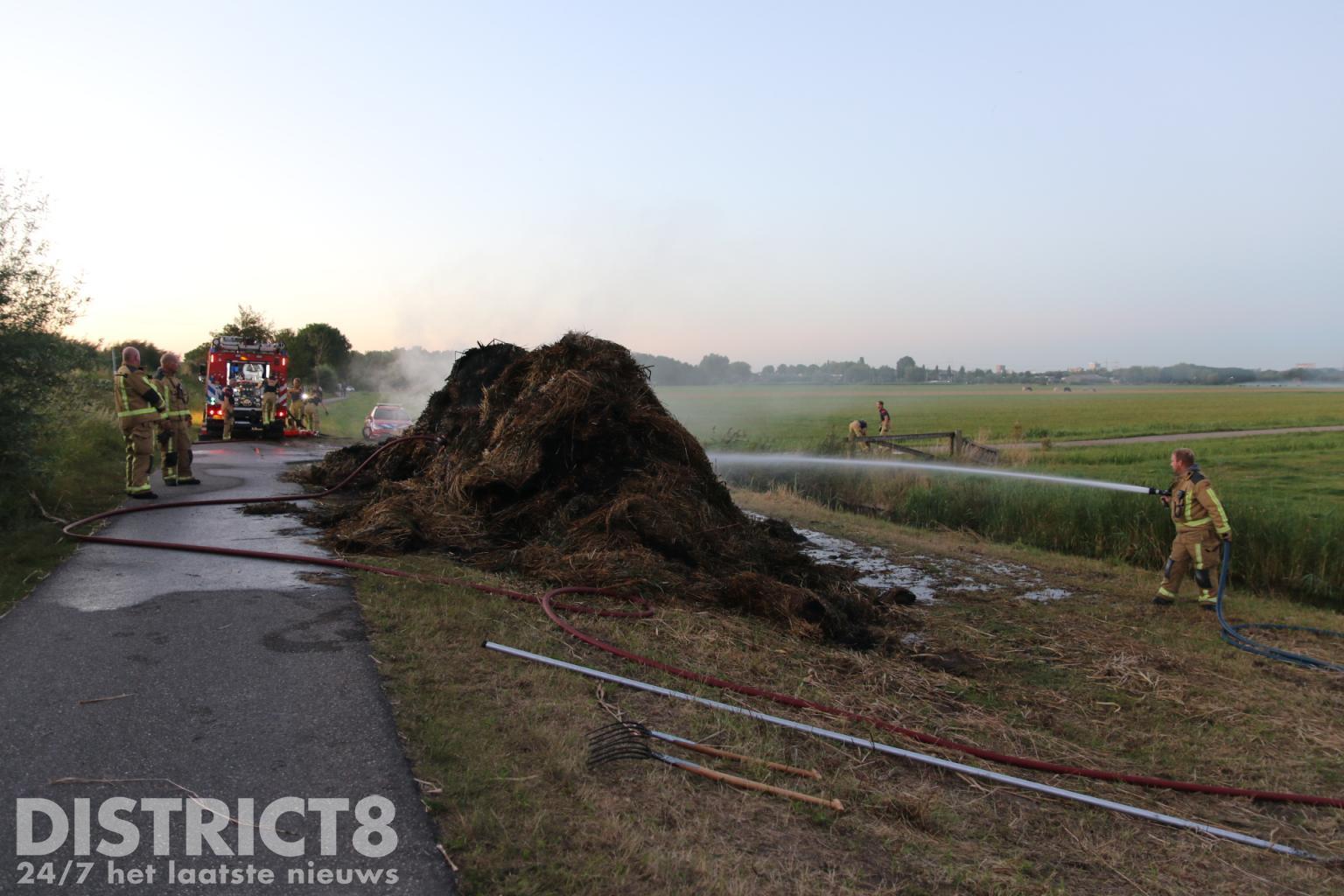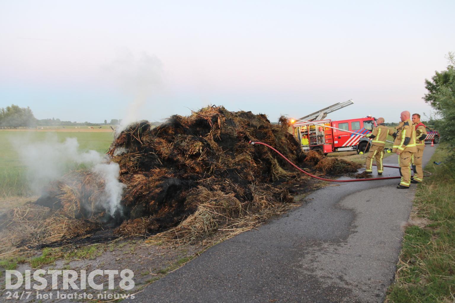 Met veel moeite heeft de brandweer de brand onder controle weten te krijgen. Met hooivorken heeft de brandweer een deel van de stapel uit elkaar getrokken.