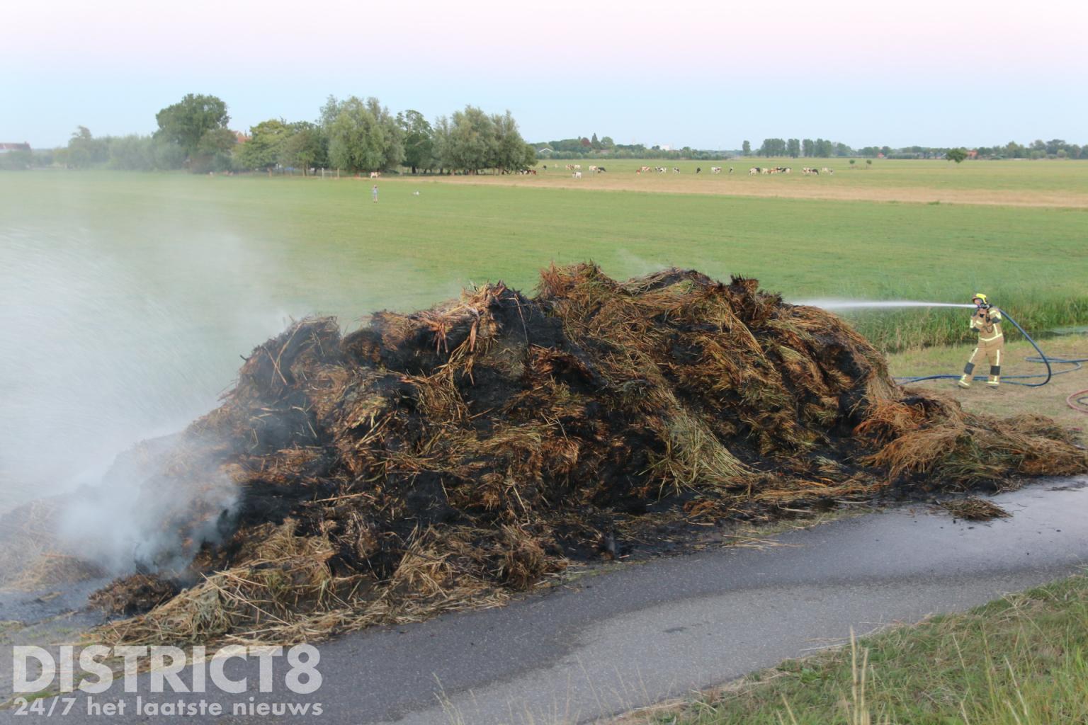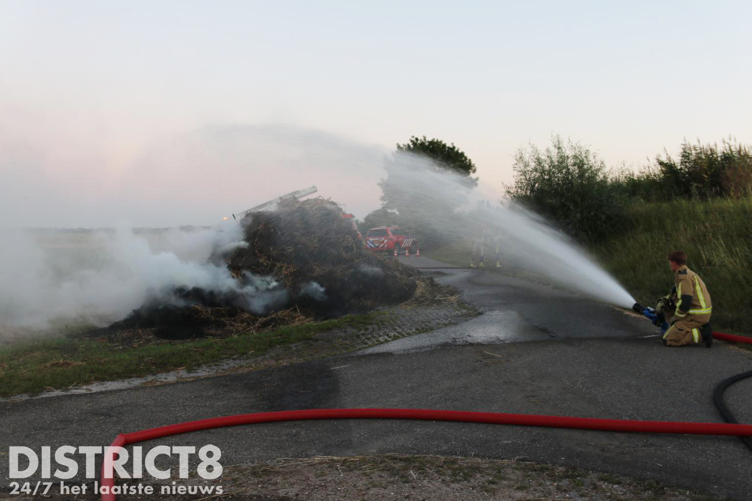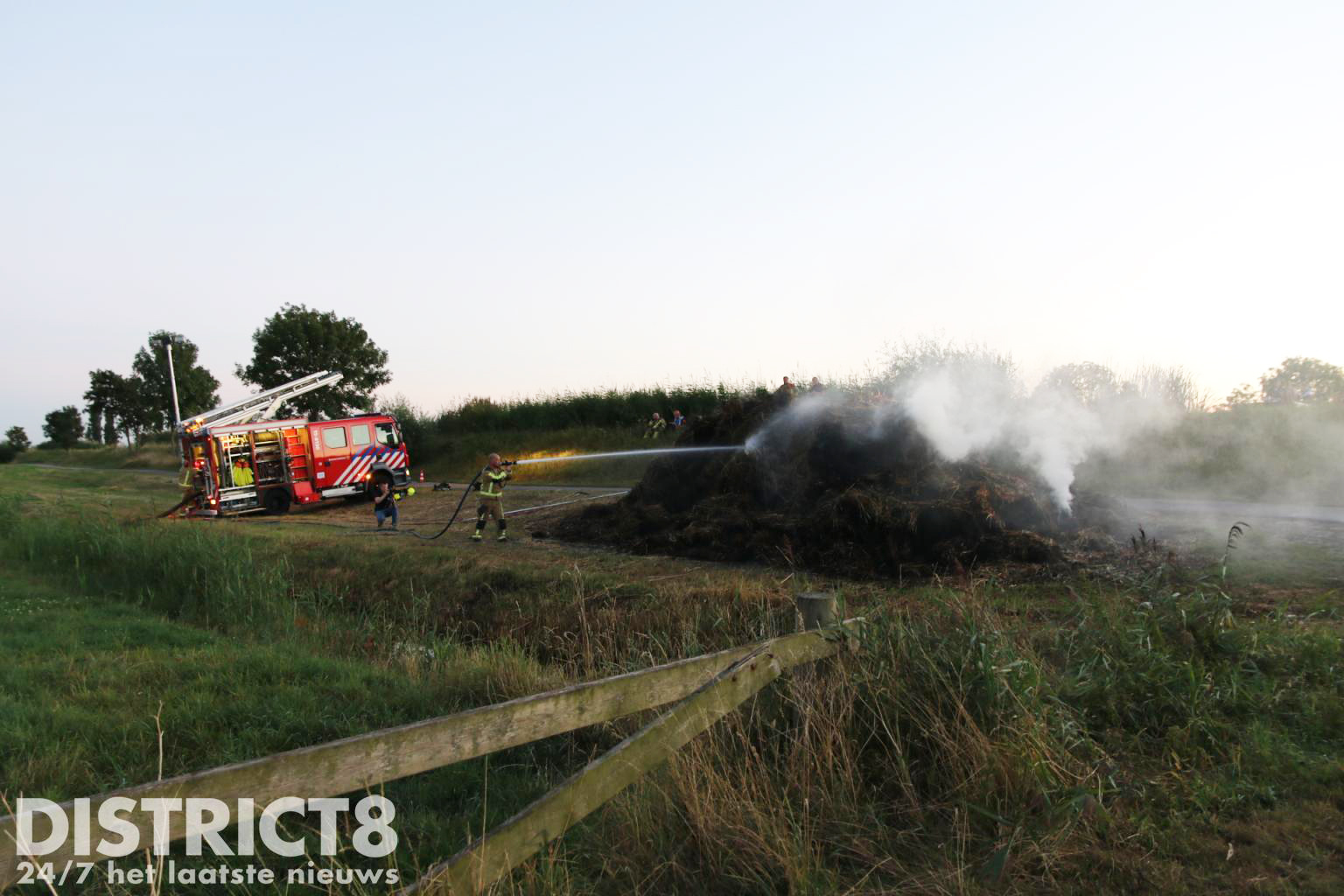 Met veel moeite heeft de brandweer de brand onder controle weten te krijgen. Met hooivorken heeft de brandweer een deel van de stapel uit elkaar getrokken.