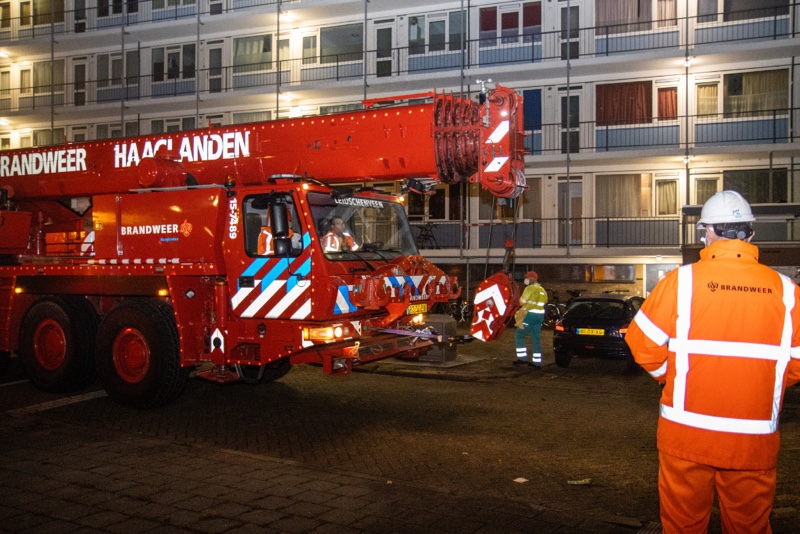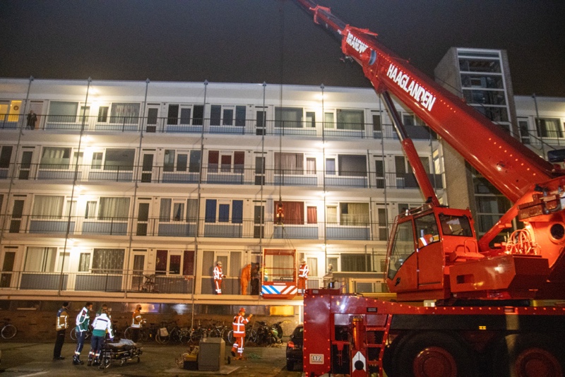 De man moest naar het ziekenhuis. De situatie liet het echter niet toe om hem met een brancard door het gebouw naar beneden te krijgen, waarna de hulp van de brandweer werd ingeroepen. Omdat de man zwaarlijvig was en de ladderwagen niet sterk genoeg was, is de hijskraan van de brandweer vanuit de regio Haaglanden opgeroepen. Uiteindelijk is de patient veilig naar beneden gehesen, waarna hij met de gereedstaande Mobiele Intensive Care Unit (MICU) uit Hollands Midden naar het ziekenhuis vervoerd is.