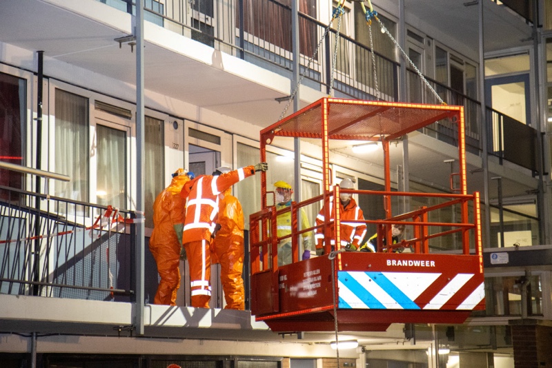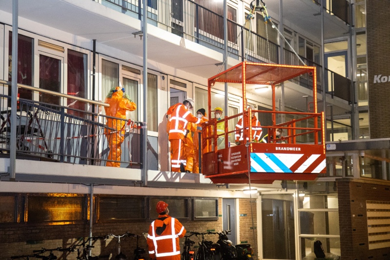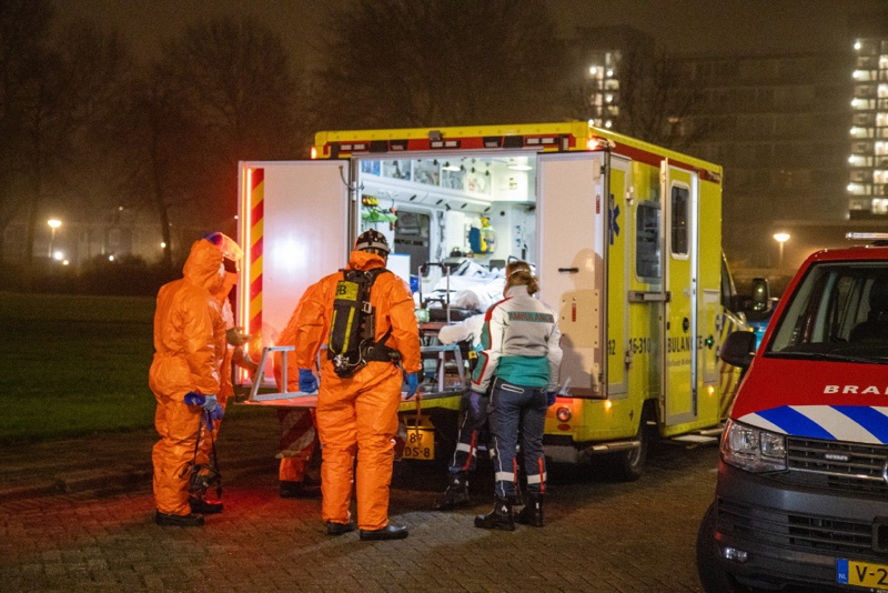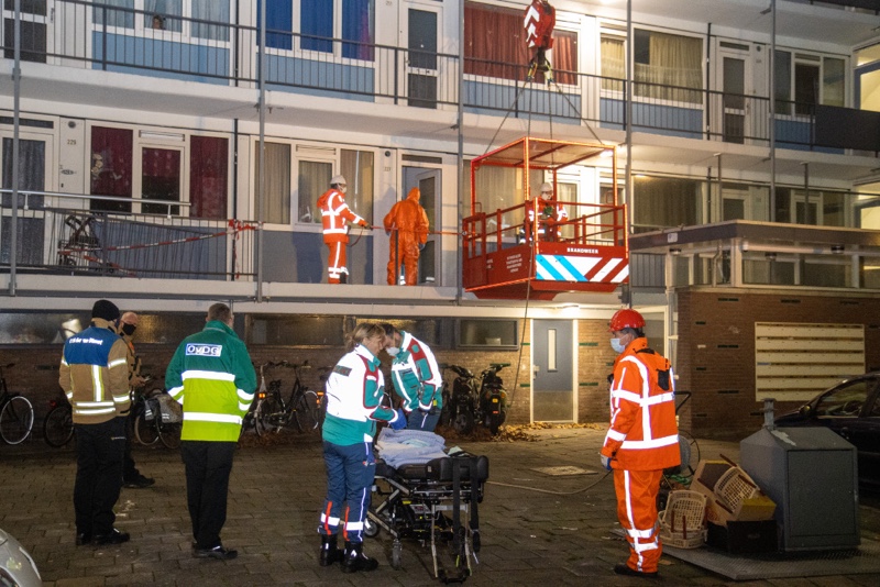 Hoogvliet – Vannacht zijn de hulpdiensten lange tijd bezig geweest om een patient vanaf de eerste etage van een woning aan de Korianderstraat naar beneden te krijgen.