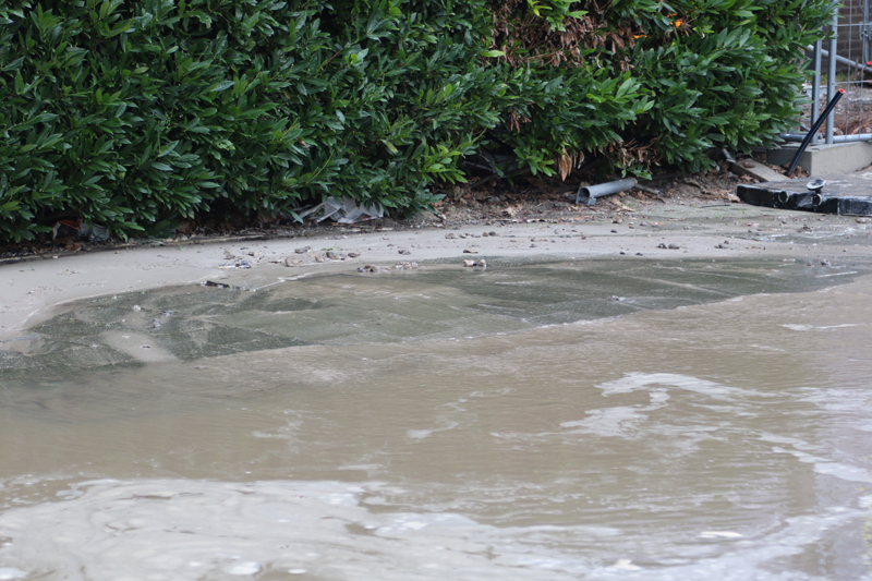 Toen de bestuurder van de kraan zijn voertuig wilde stempellen ging het mis. Eén van de stempels zakte weg in de straatstenen en raakte een waterleiding. Dit zorgde ervoor dat binnen enkele minuten de straat deels onder water stond.