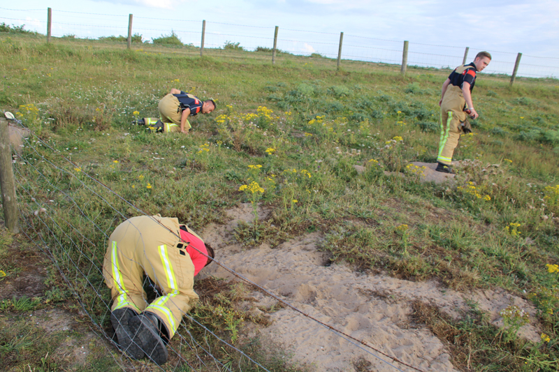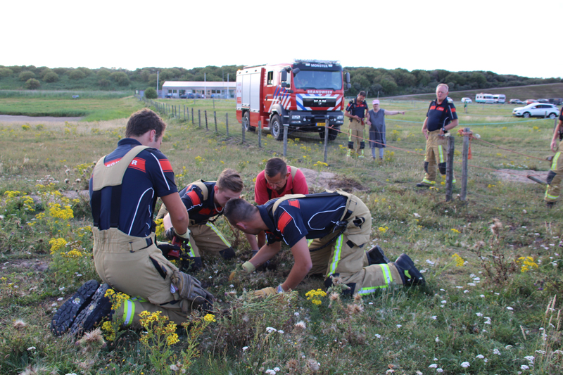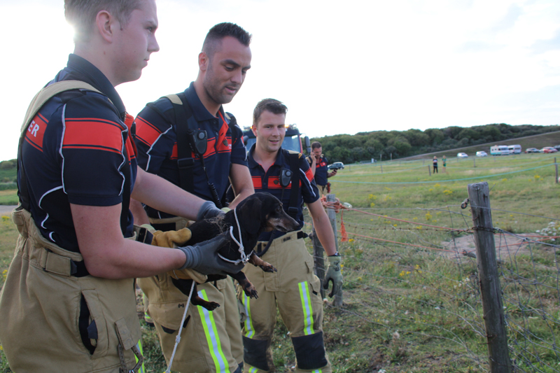 ‘s-Gravenzande – Op de parkeerplaats van de Verlengde Strandweg in ‘s-Gravenzande heeft hond Elsie, een 7 jaar oude teckel vrouwtje, vastgezeten in de konijnenhollen van de duinen.