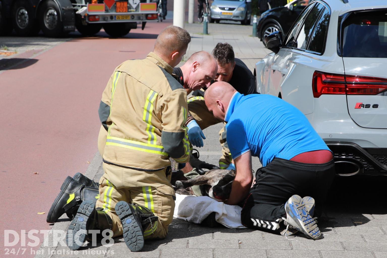 De brandweer heeft zich samen met een omstander over de zwaargewonde hond ontfermd. Bij navraag bij de dierenambulance bleek deze niet beschikbaar te zijn, aldus de melder, hierop hebben de hulpdiensten besloten de zwaargewonde hond achterin een politiebus te leggen en met spoed naar een dierenziekenhuis te brengen.