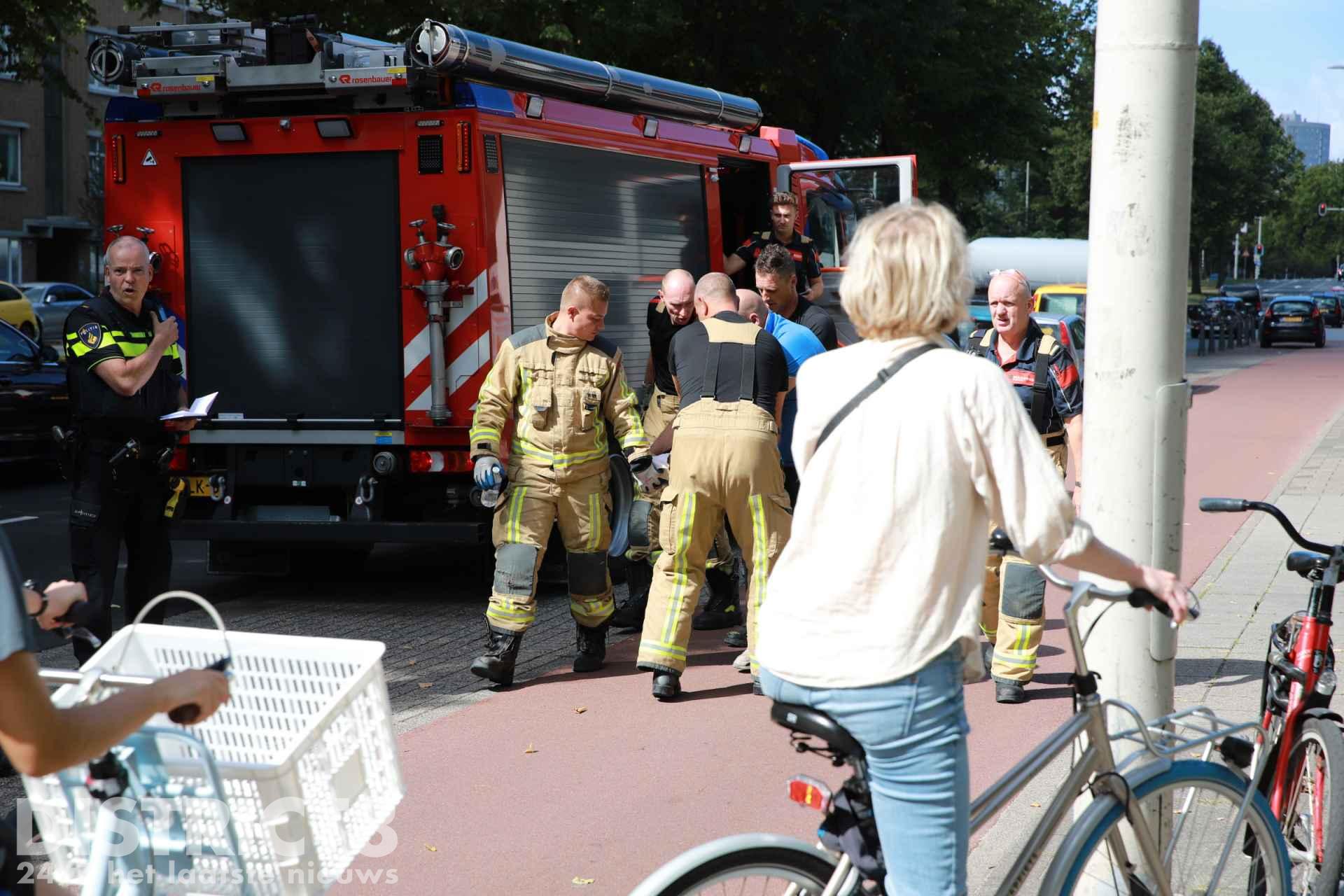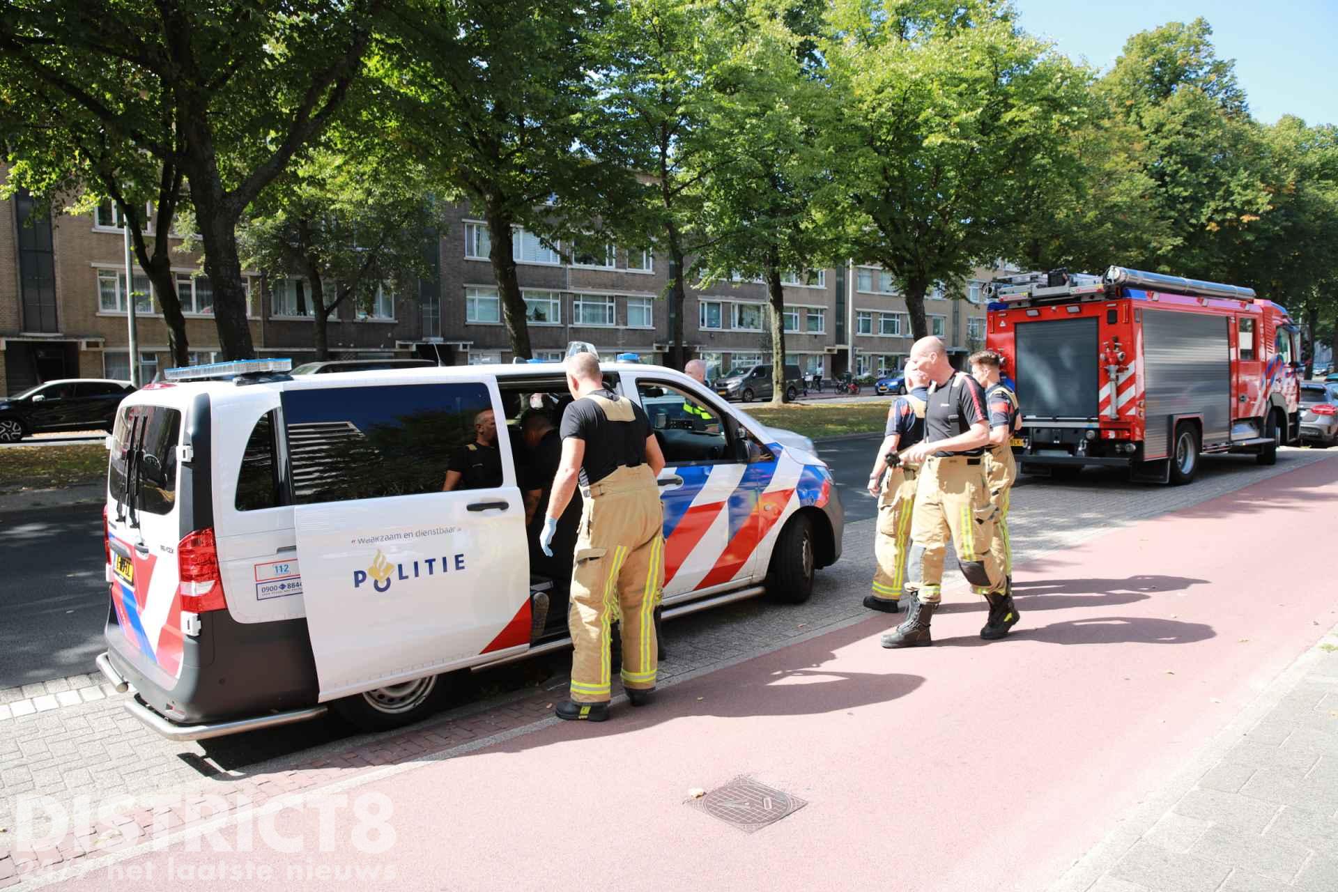 Zowel de politie als de brandweer zijn niet veel later met spoed vertrokken, achterin de politiebus reden enkele brandweermannen mee om de zwaargewonde hond rustig te houden.