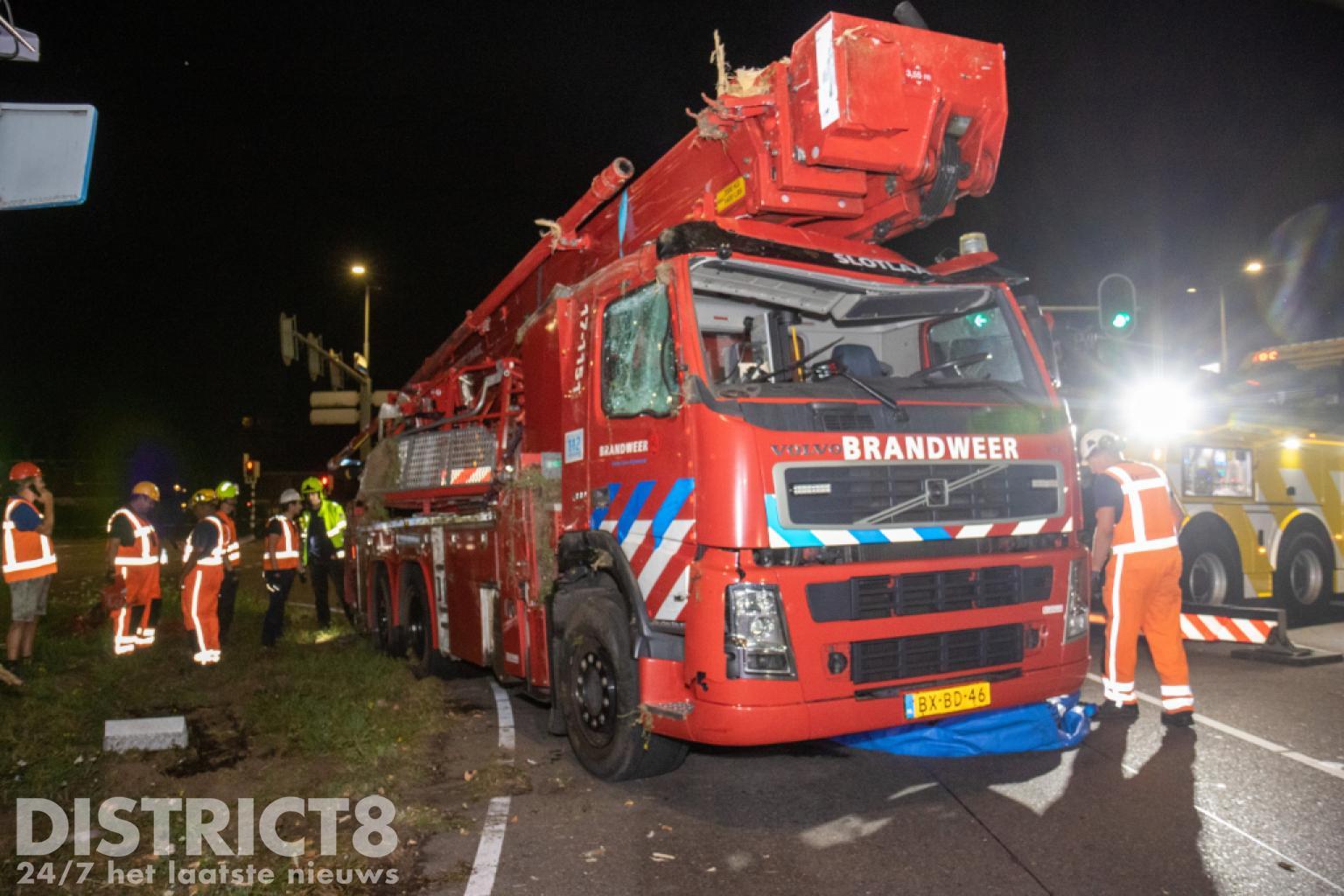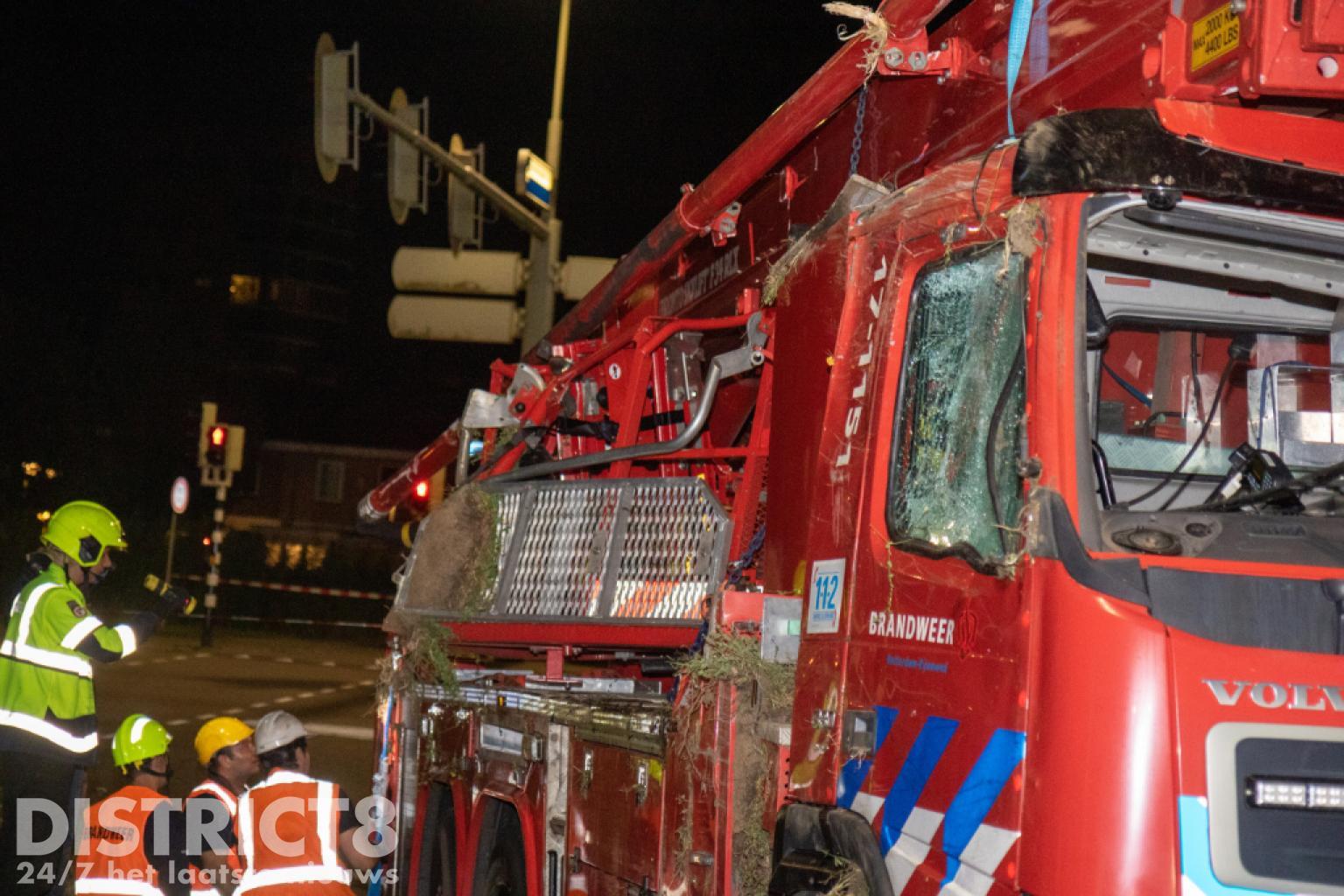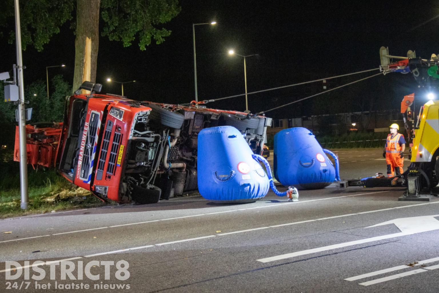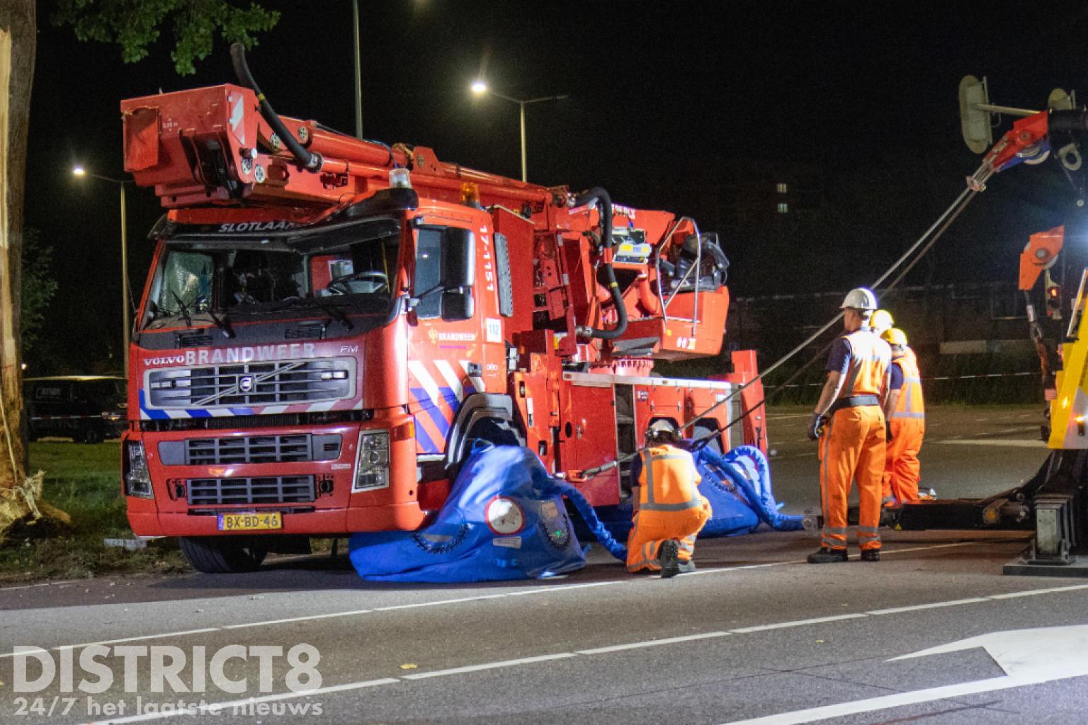 Hoogwerker brandweer kantelt tijdens spoedrit Kanaalweg Capelle a/d IJssel