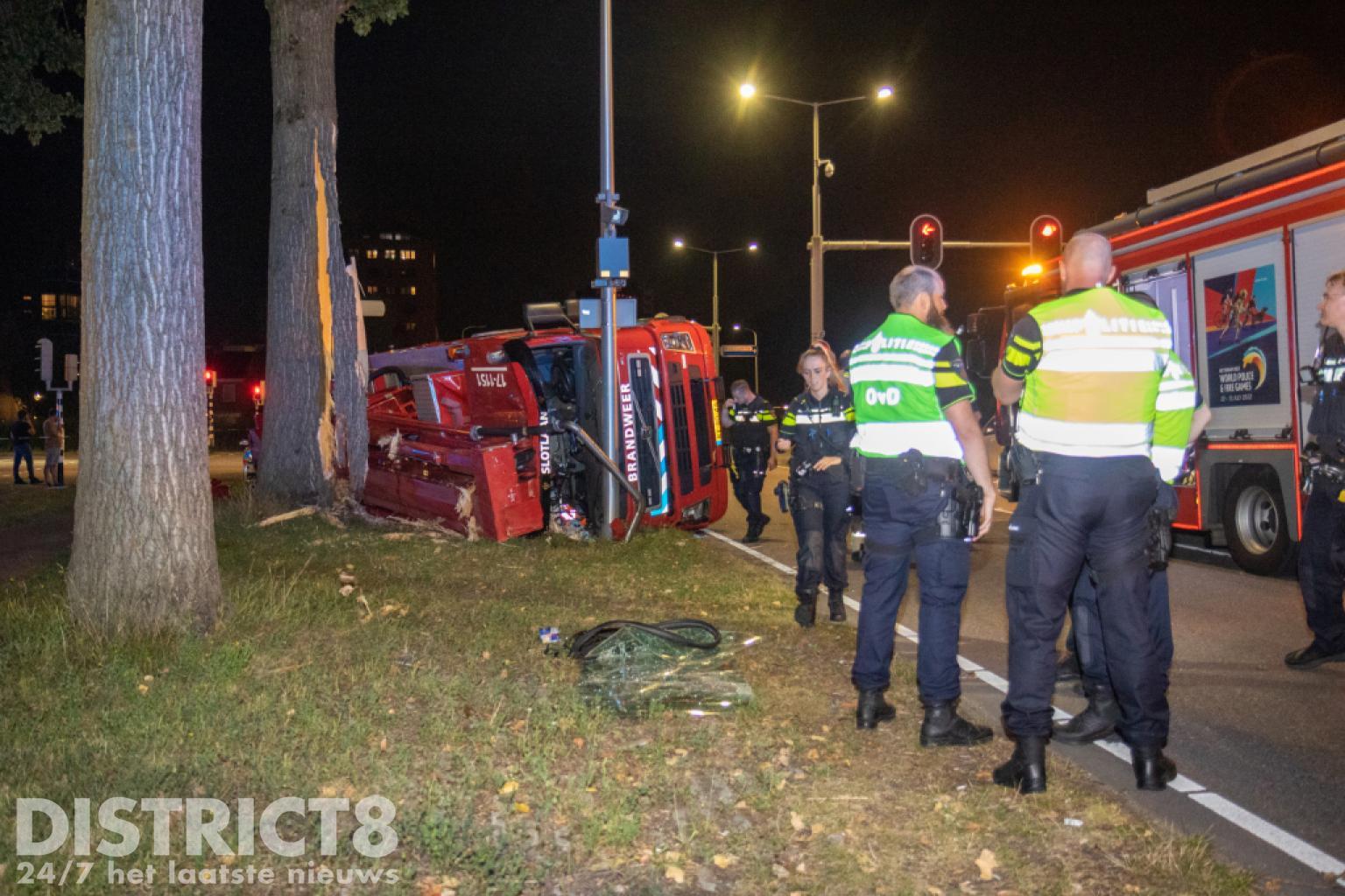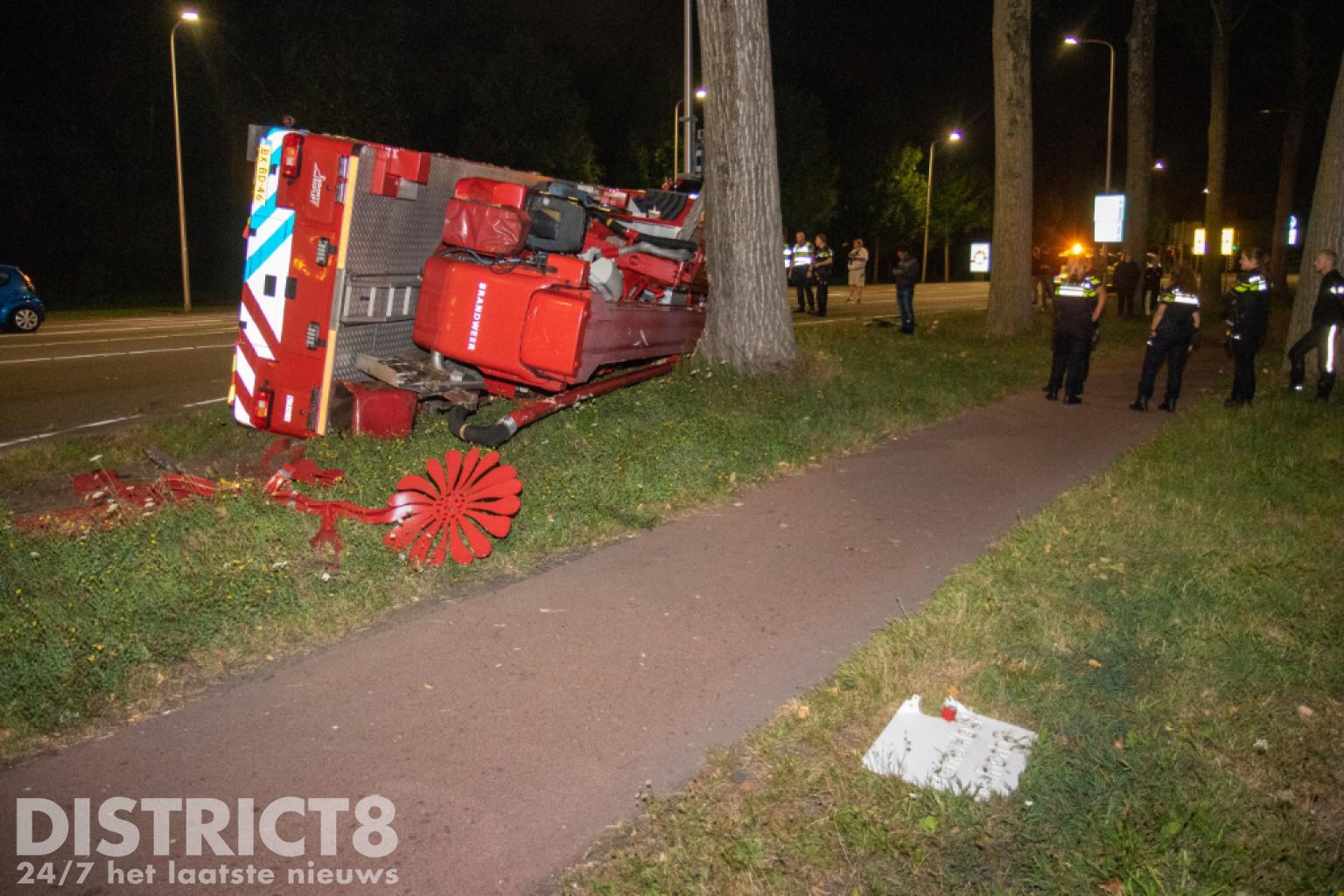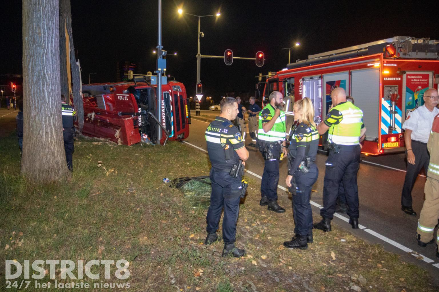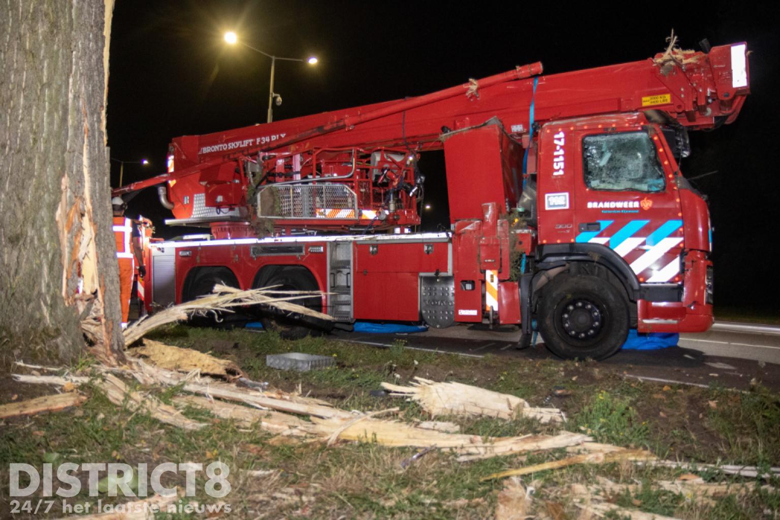 Hoogwerker brandweer kantelt tijdens spoedrit Kanaalweg Capelle a/d IJssel