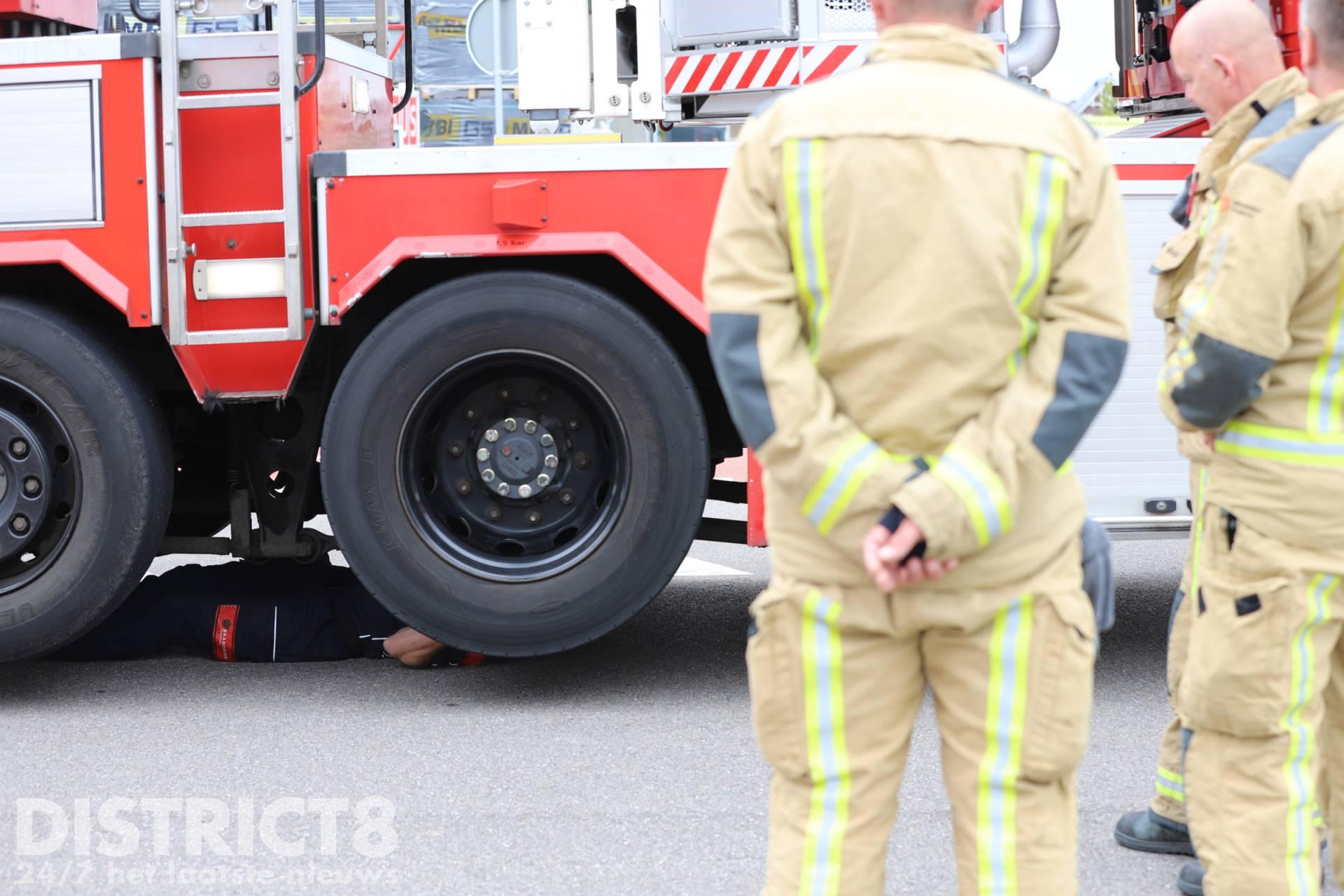 Toen de brandweer ter plaatse kwam keken de brandweermannen raar op toen er rook onder de hoogwerker vandaan kwam. Hierop is de brandweer hun eigen brandweerwagen gaan blussen.