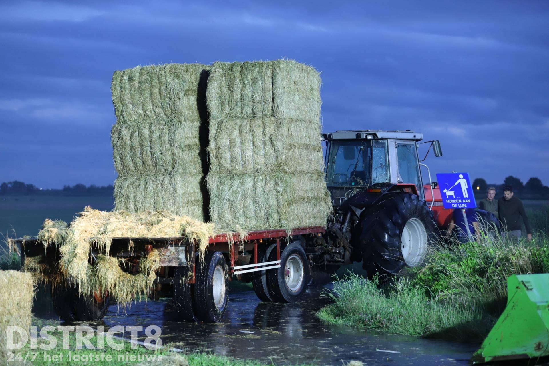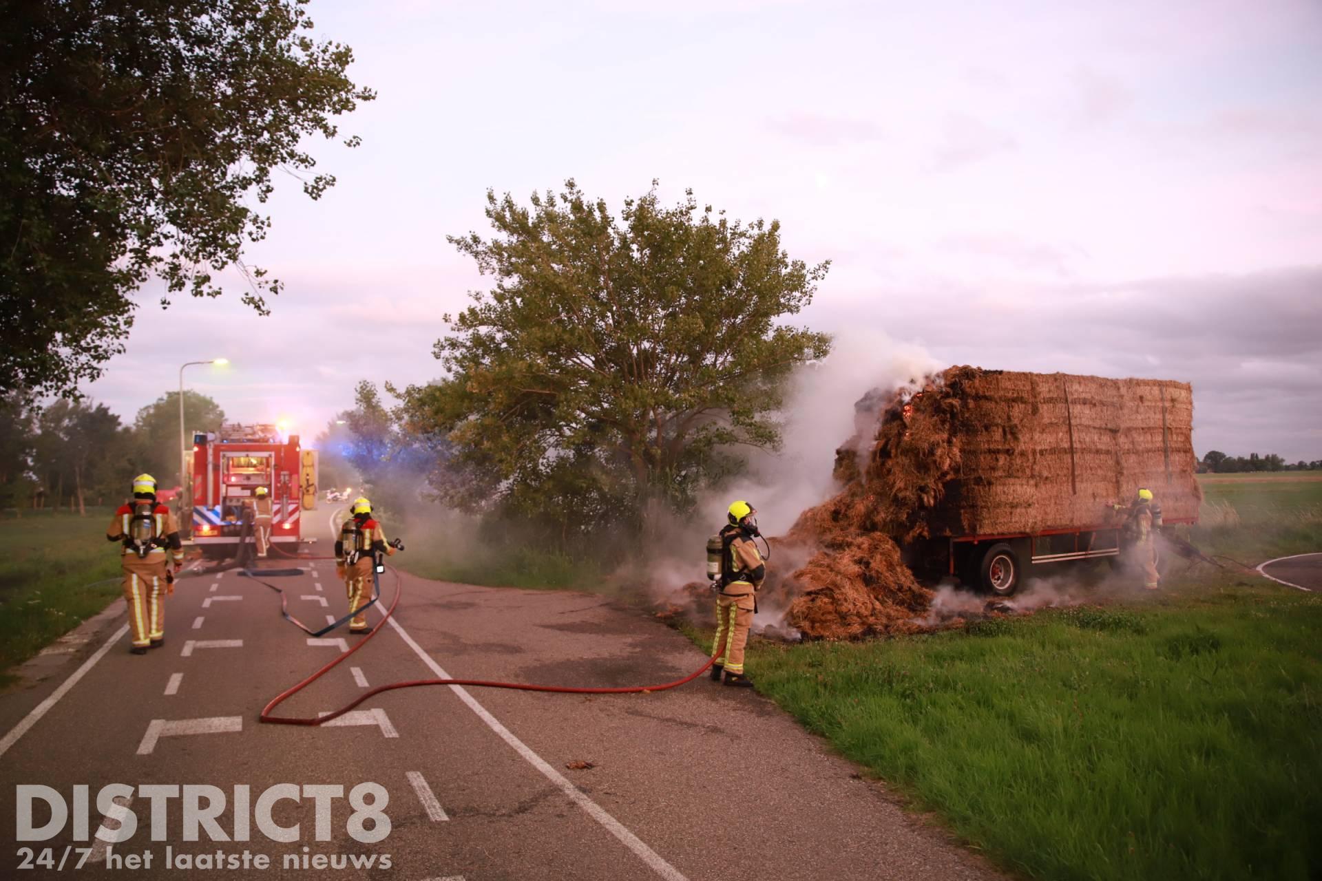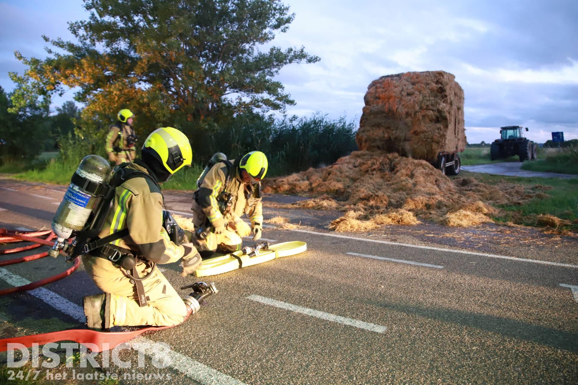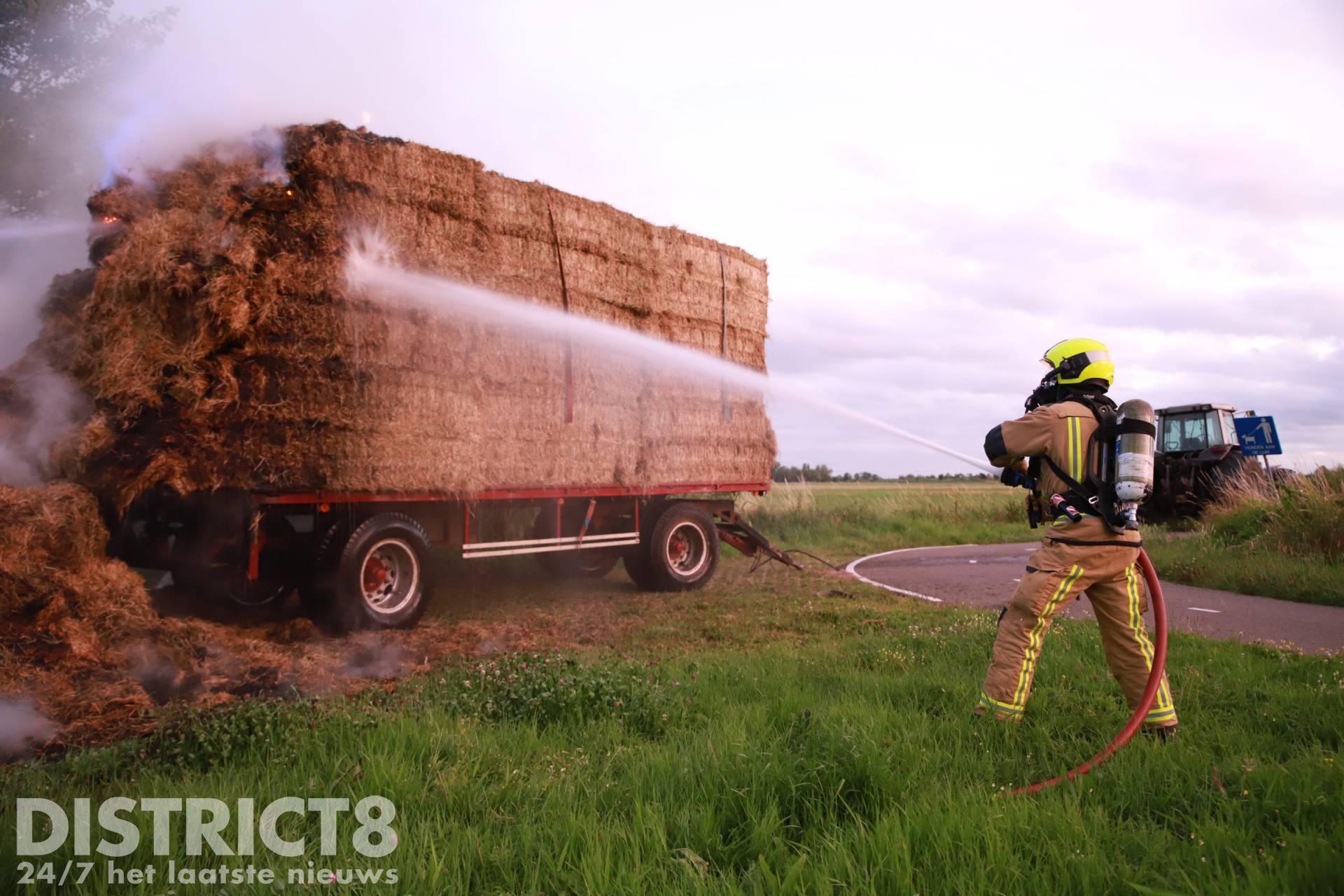 Het hooi vloog tijdens het rijden in brand, het is onbekend hoe de brand heeft kunnen ontstaan.