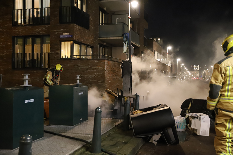 Den Haag – Op de Markensestraat in Den Haag heeft dinsdagavond een hoop afval en een parkeerautomaat in brand gestaan.