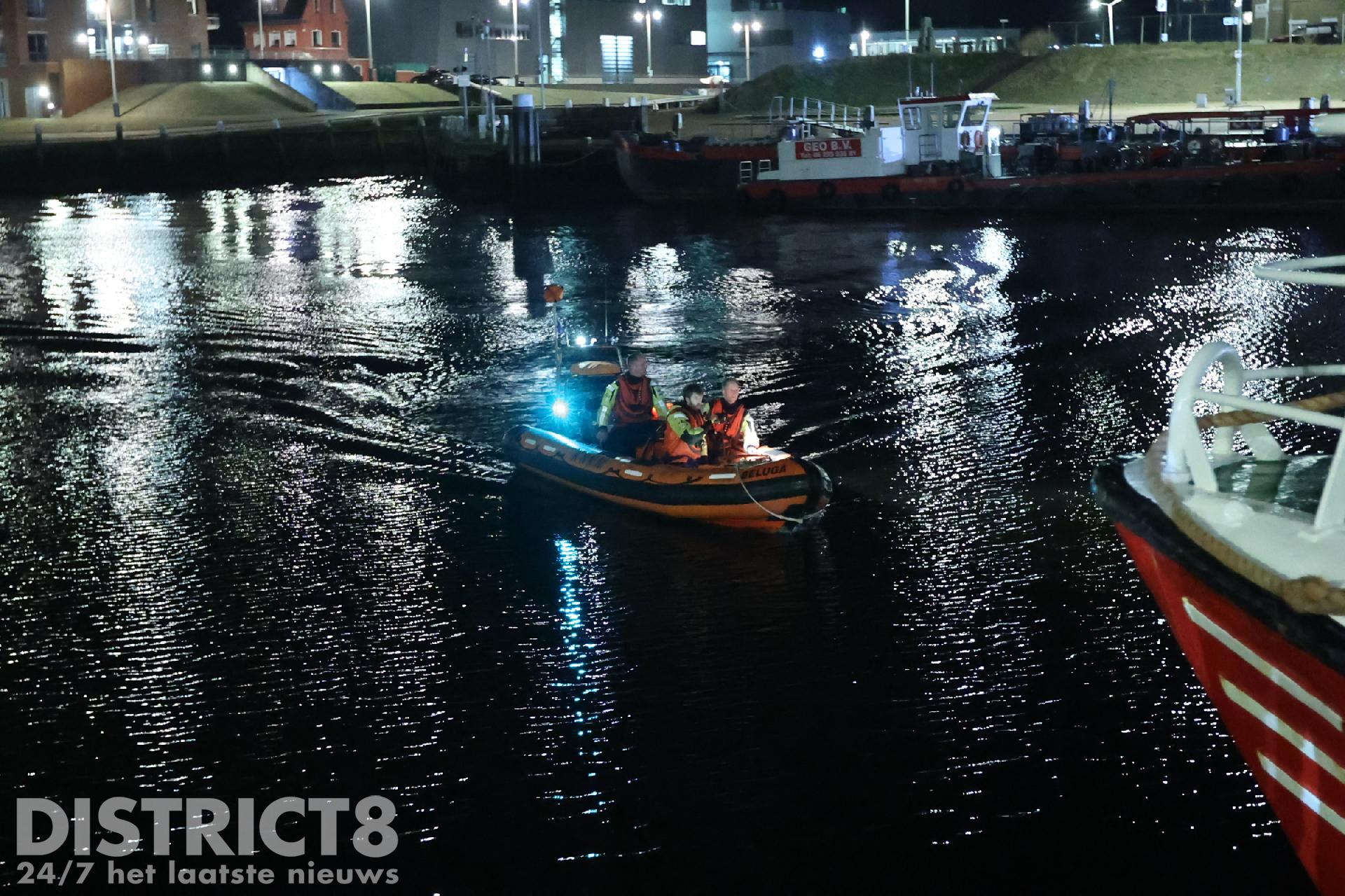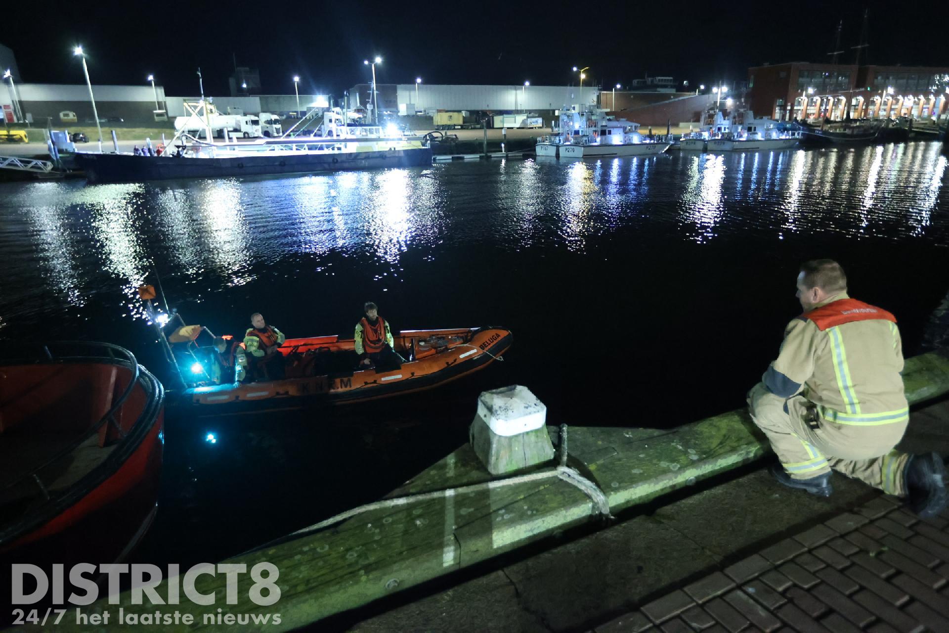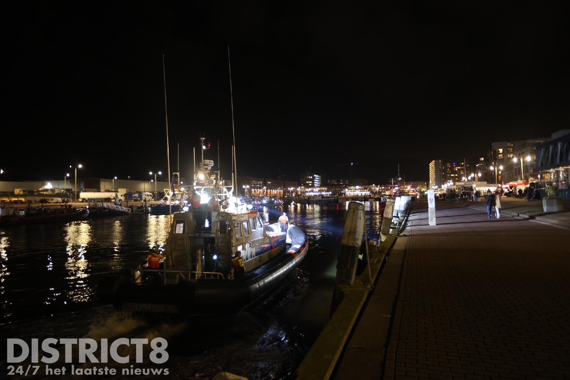 Er wordt gezocht langs de kade van de tweede haven door de politie, brandweer en de Kitty Roosmale Nepvue reddingsboot van de KNRM.
