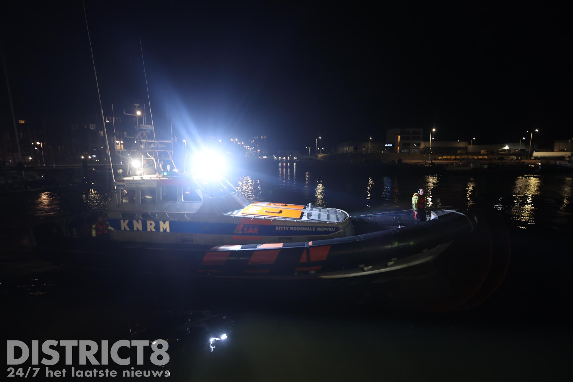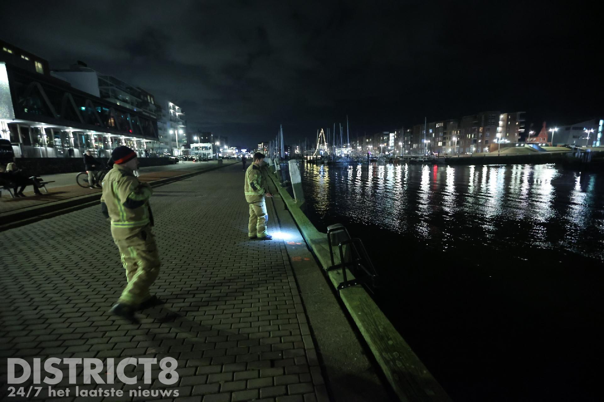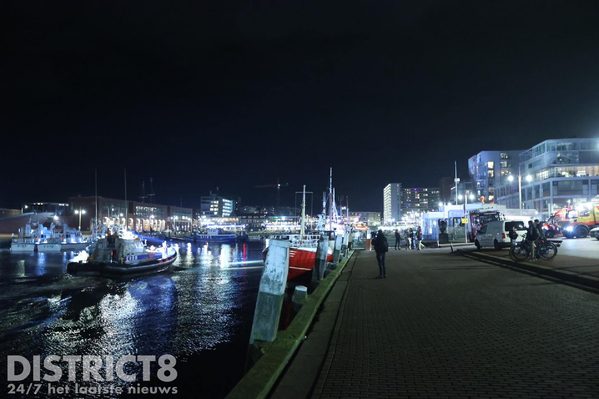 Er wordt gezocht langs de kade van de tweede haven door de politie, brandweer en de Kitty Roosmale Nepvue reddingsboot van de KNRM.