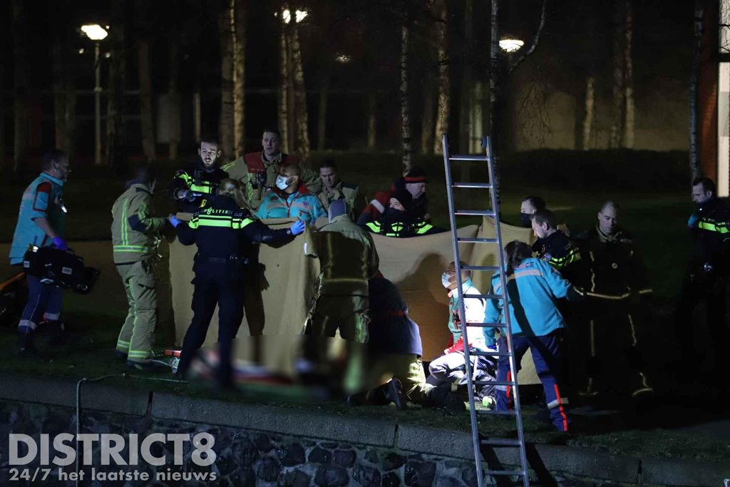 Hulpdiensten halen man uit water; persoon overleden Leeghwaterbrug Den Haag