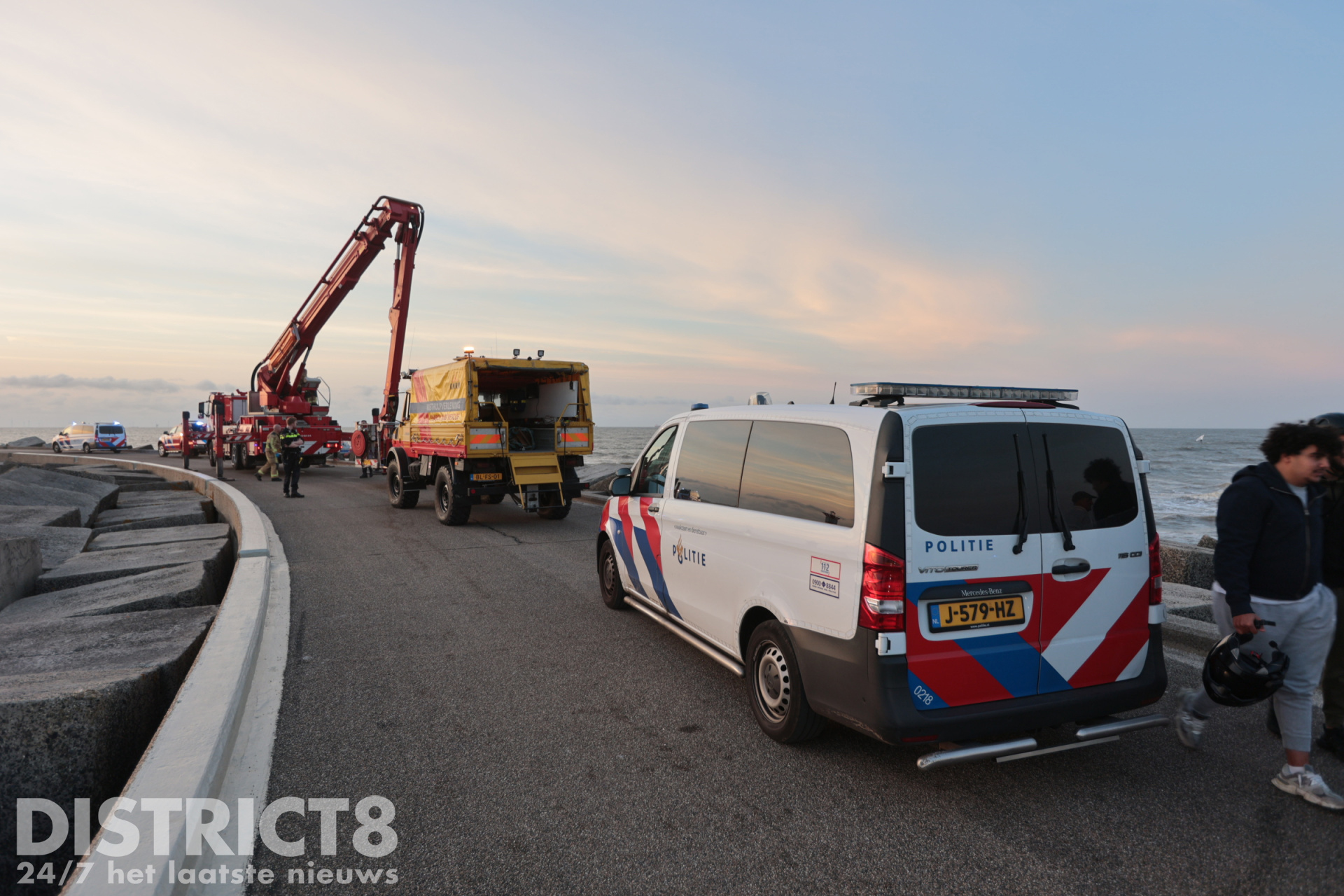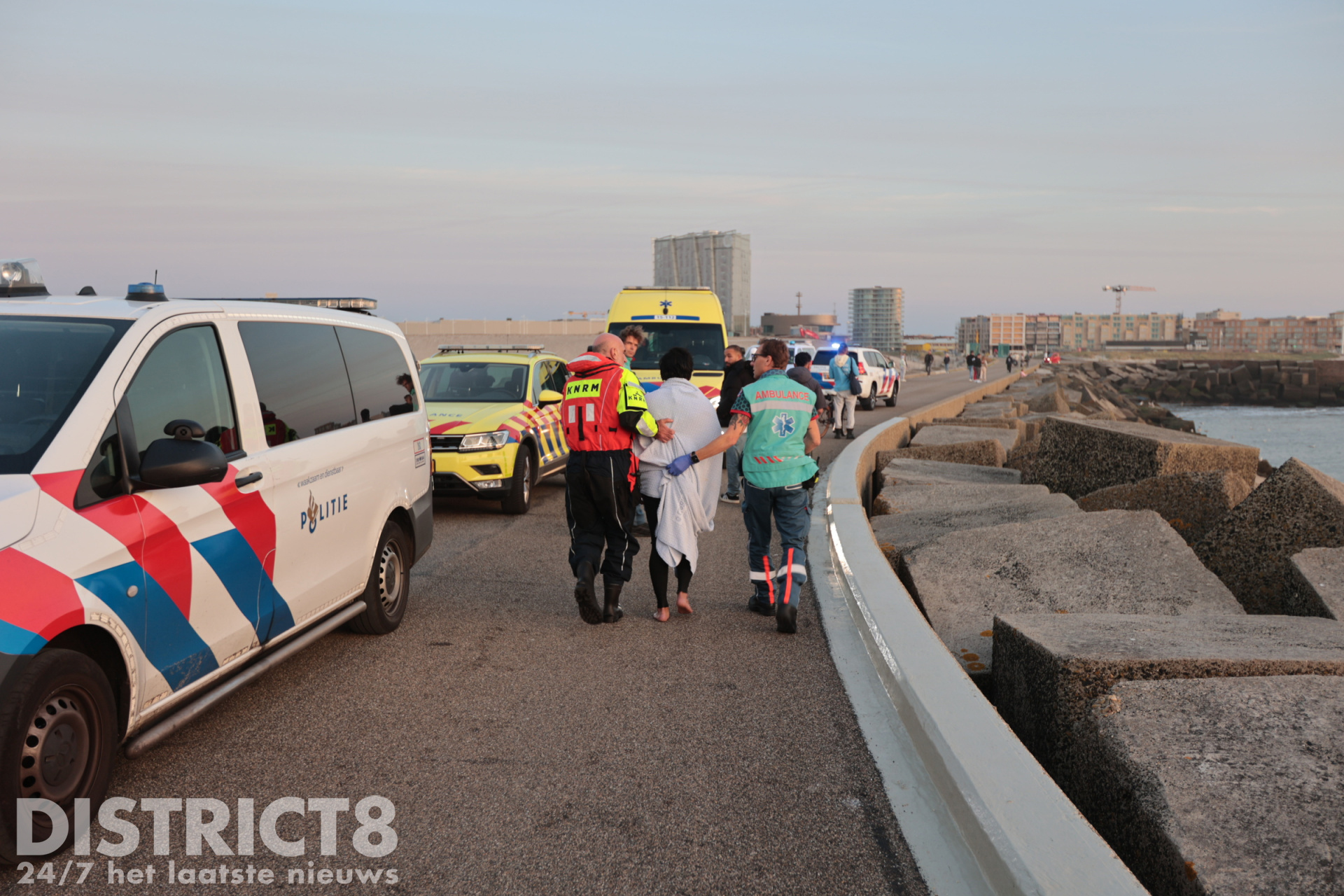 Even voor half acht werd er gebeld naar de Kustwacht. Een Amerikaanse toerist zag een man in problemen. De man zat op de blokken van het havenhoofd en kwam daar niet meer vandaan. Direct werden meerdere hulpdiensten gealarmeerd.
