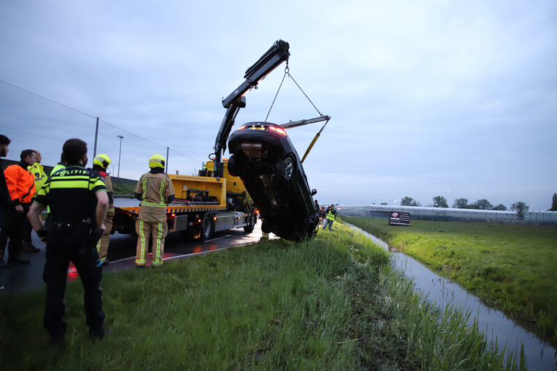 Wateringen – Donderdagavond is er een auto te water geraakt aan de Wippolderlaan-N211 in Wateringen in de richting van de A4.