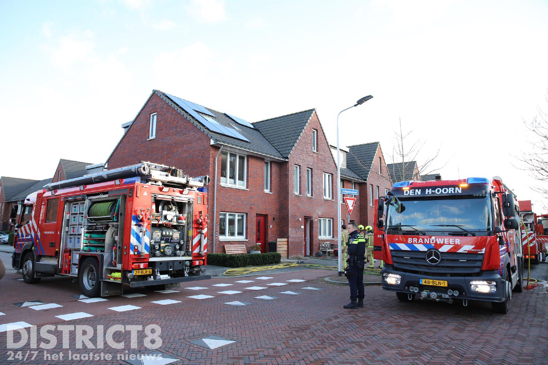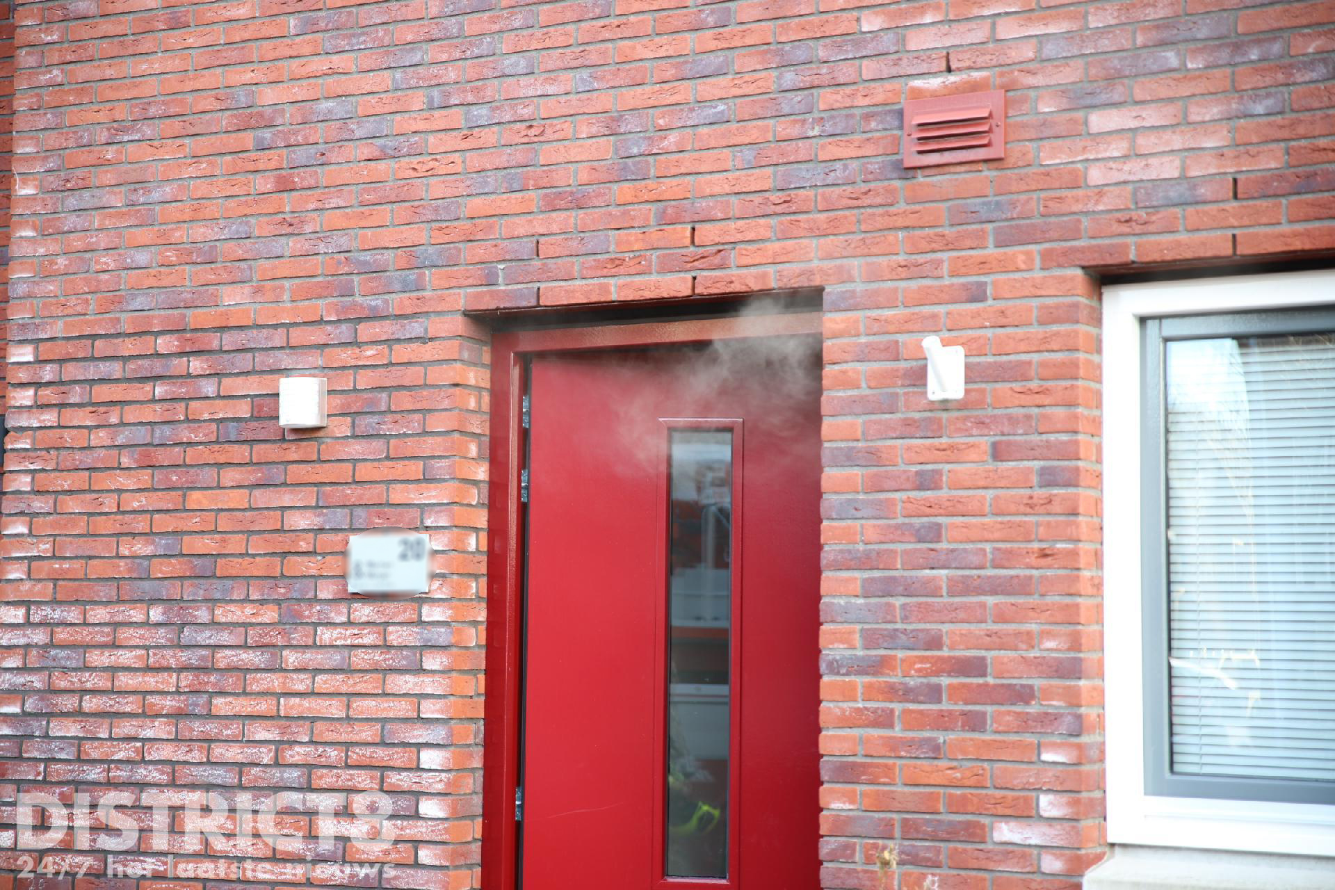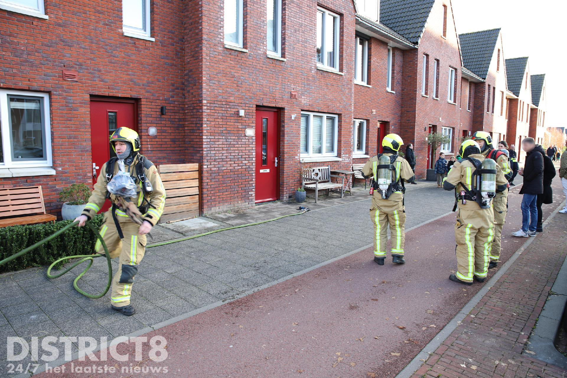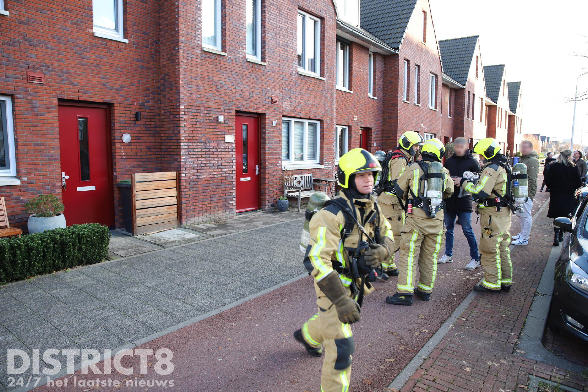 De brandweer kwam met spoed ter plaatse. De rook leek in eerste instantie van de zolder af te komen, maar daar woedde de brand niet. De brand bleek te woeden in de meterkast. De brandweer schaalde op naar ‘middelbrand’.