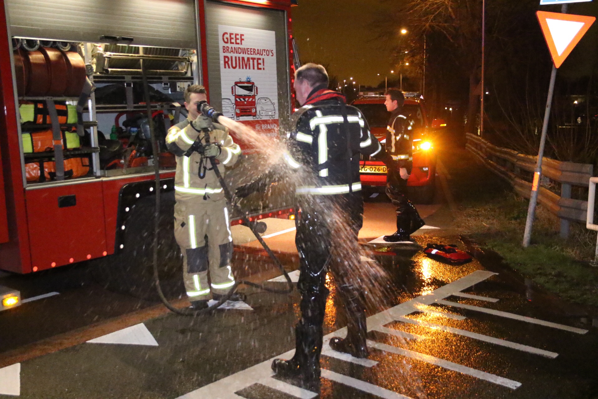 De brandweer kwam met meerdere voertuigen ter plaatse. Na een zoekslag in het water werd er niemand aangetroffen.