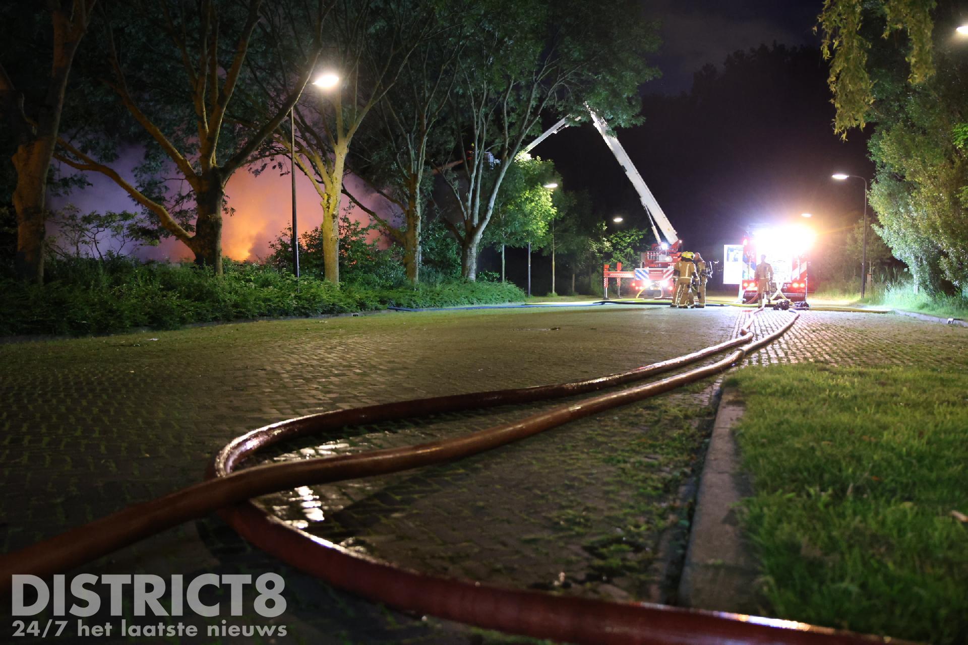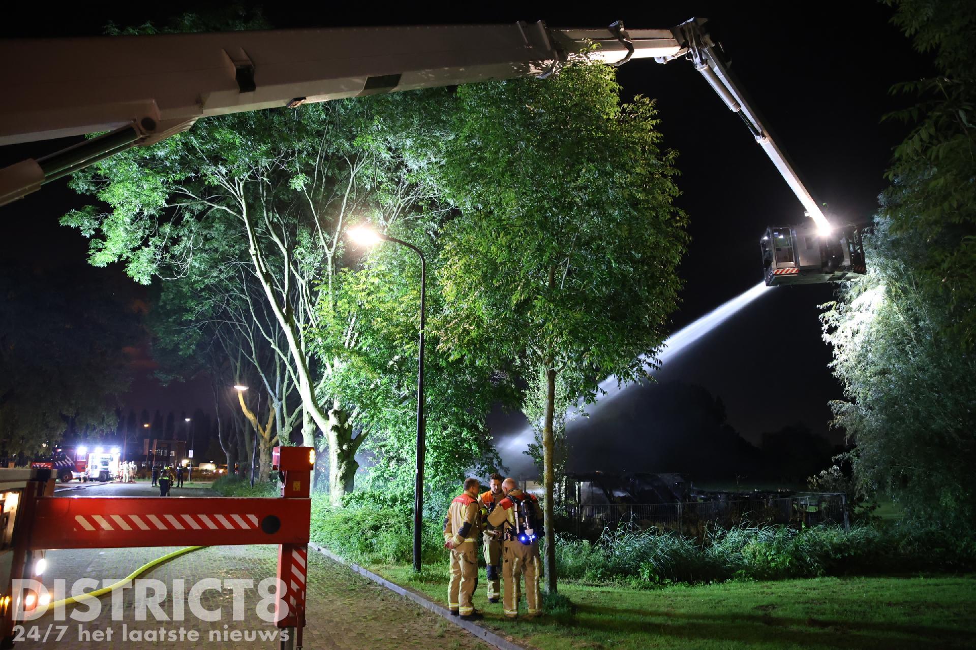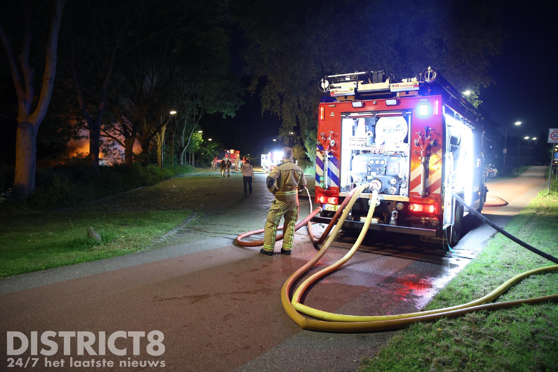 Zondagavond even na half twaalf werd de brand ontdekt en de hulpdiensten werden direct gewaarschuwd. De brandweer schaalde al snel op naar ‘Middelbrand’. Dit betekent dat meerdere voertuigen zijn ingezet. Er werd ook een hoogwerker ingezet om vanaf hoogte de brand te bestrijden.