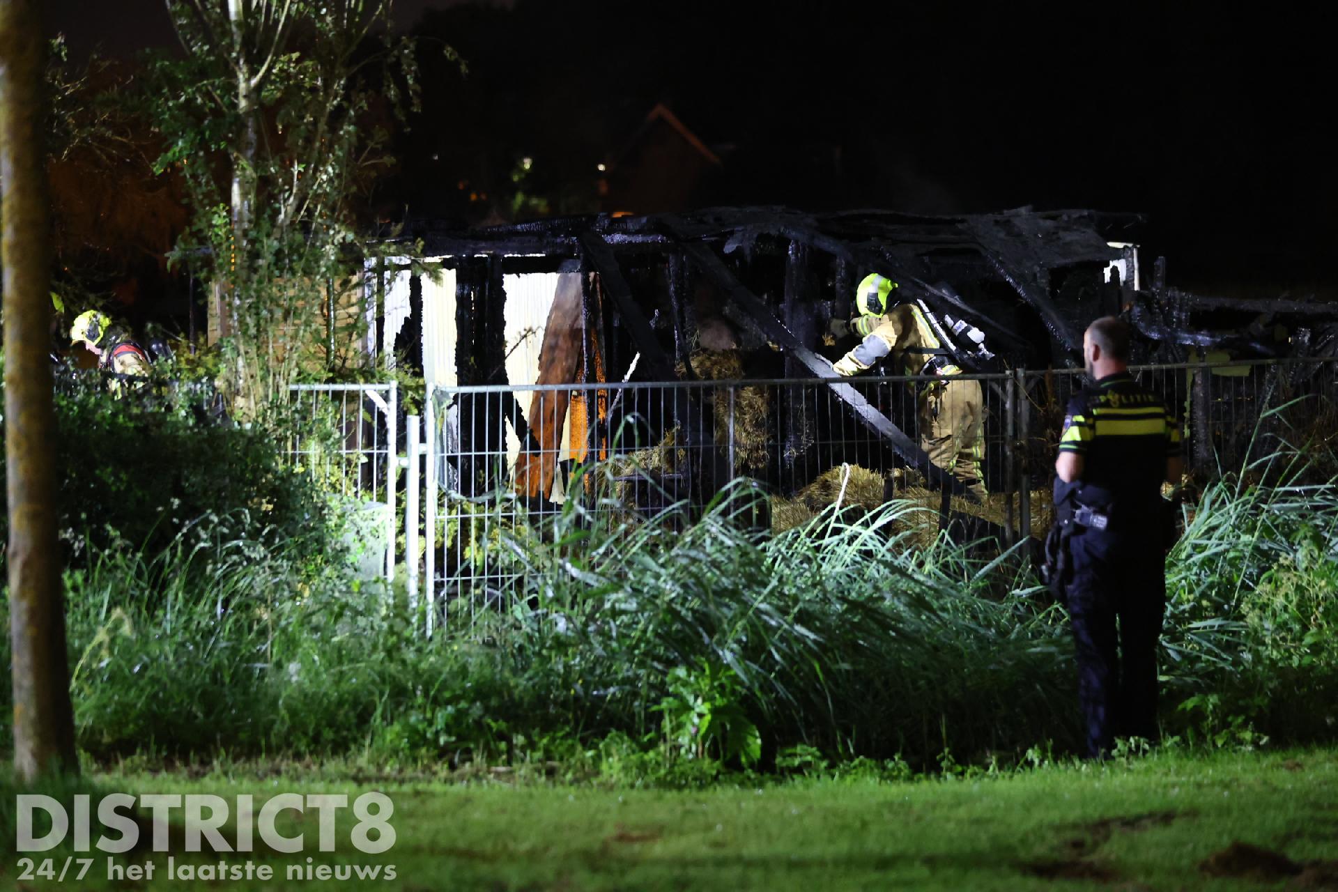 In de schuur stonden meerdere paarden. Deze konden op tijd worden weggejaagd door omstanders en stonden op veilige afstand van de brand. De brandweer heeft uiteindelijk met onder andere een hoogwerker de brandende stal kunnen blussen. De stal kan door de brand als verloren worden beschouwd.