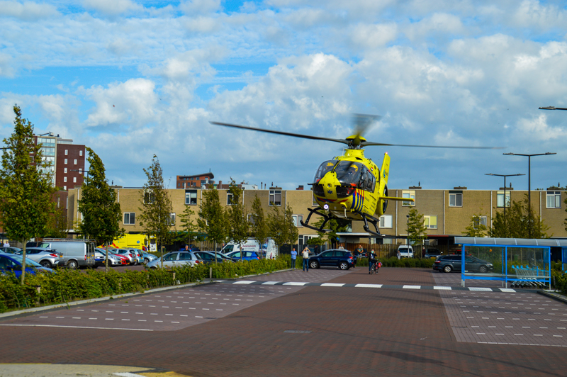 De traumahelikopter landde op een parkeerplaats bij winkelcentrum de Koningshoek, de helikopter trok redelijk wat bekijks.