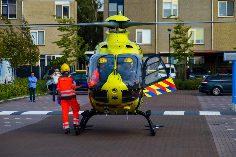 Al snel bleek de inzet van het MMT (Mobiel Medisch Team) niet meer nodig. De politie heeft iedereen op gepaste afstand gehouden terwijl de helikopter weer opsteeg.