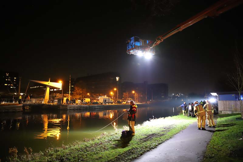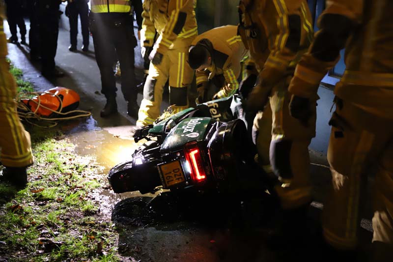 Bij de hulpdiensten kwam een melding binnen van een deel-scooter die in het water lag samen met een helm. Meteen hierop werden meerdere brandweervoertuigen aangestuurd. Later schaalde de brandweer op naar het sein ‘middel-duikalarm’.