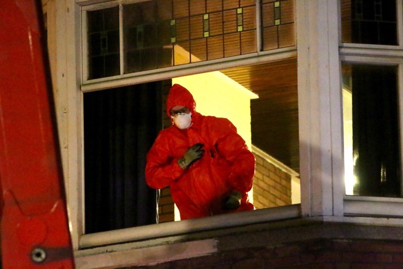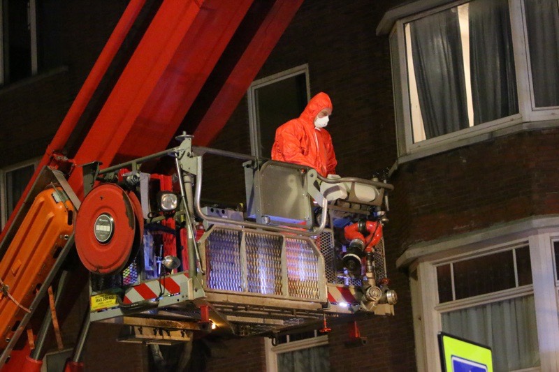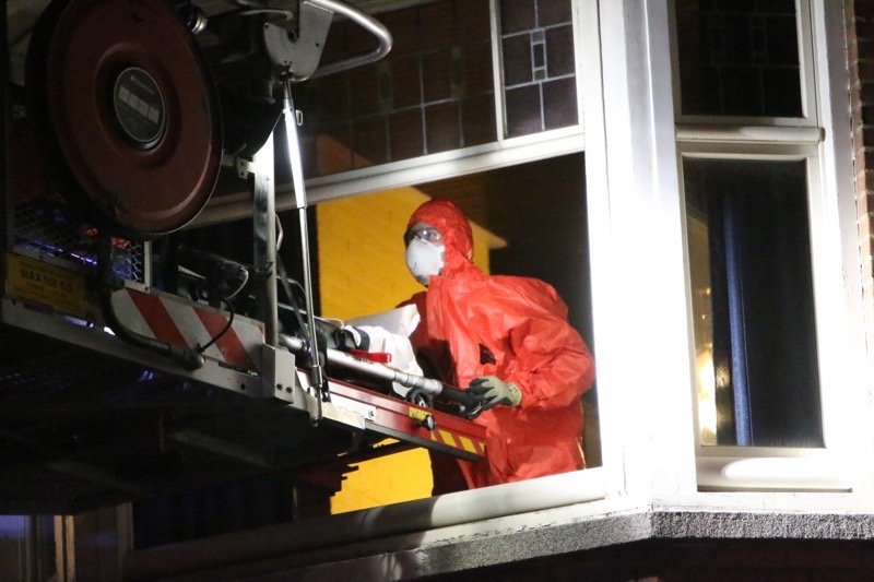In de woning was een persoon met ernstige medische klachten. Het slachtoffer was mogelijk besmet met het Coronavirus. De hulpdiensten namen daarom extra maatregelen door beschermende kleding aan te doen.