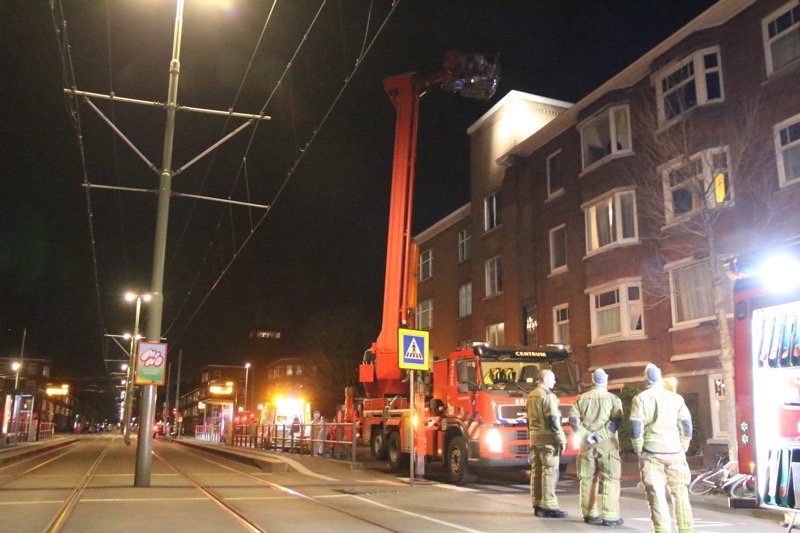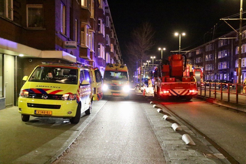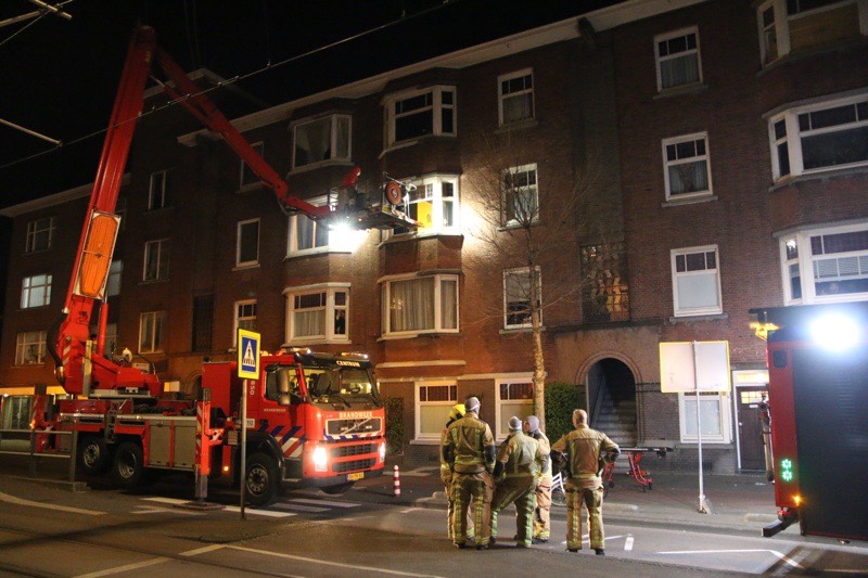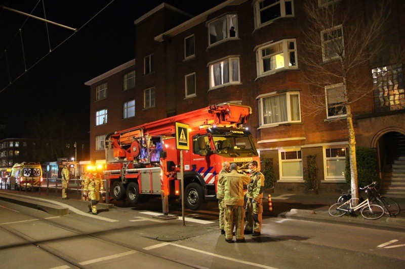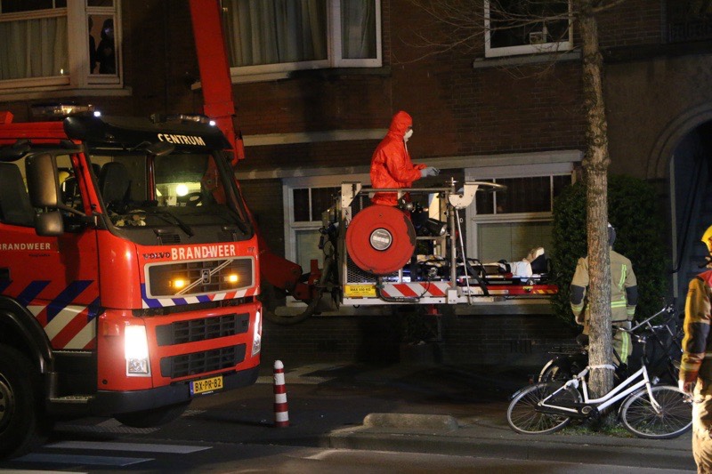 Het slachtoffer werd door de brandweer uit de woning gehaald met een hoogwerker.