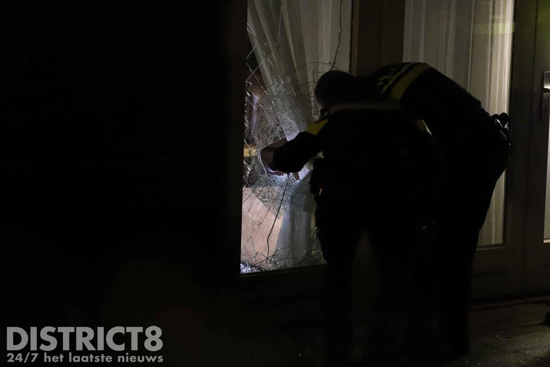De politie heeft ter plekke de getuigen gehoord en gaan onderzoek doen. Voor het glaswerk komt een glaszetter.