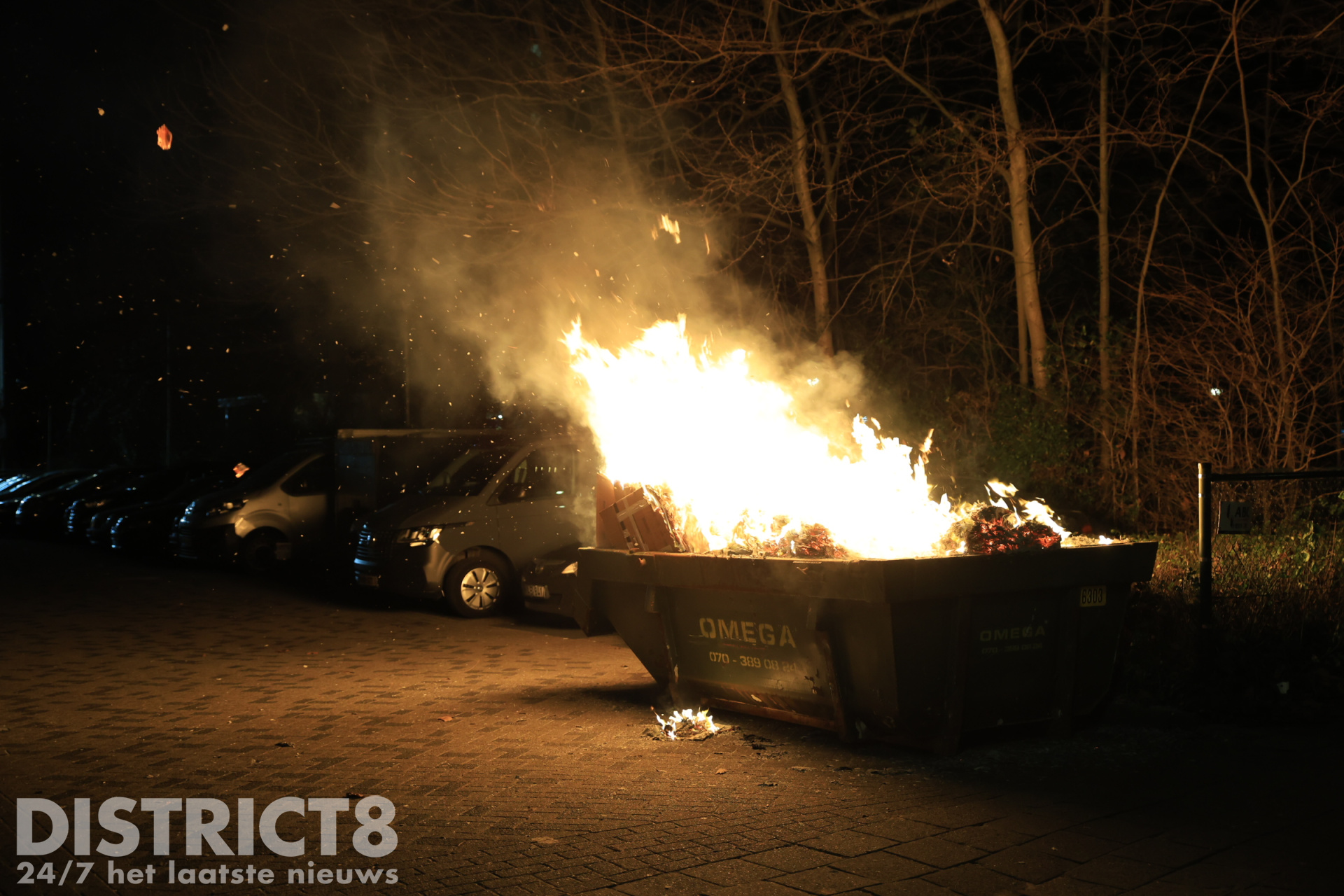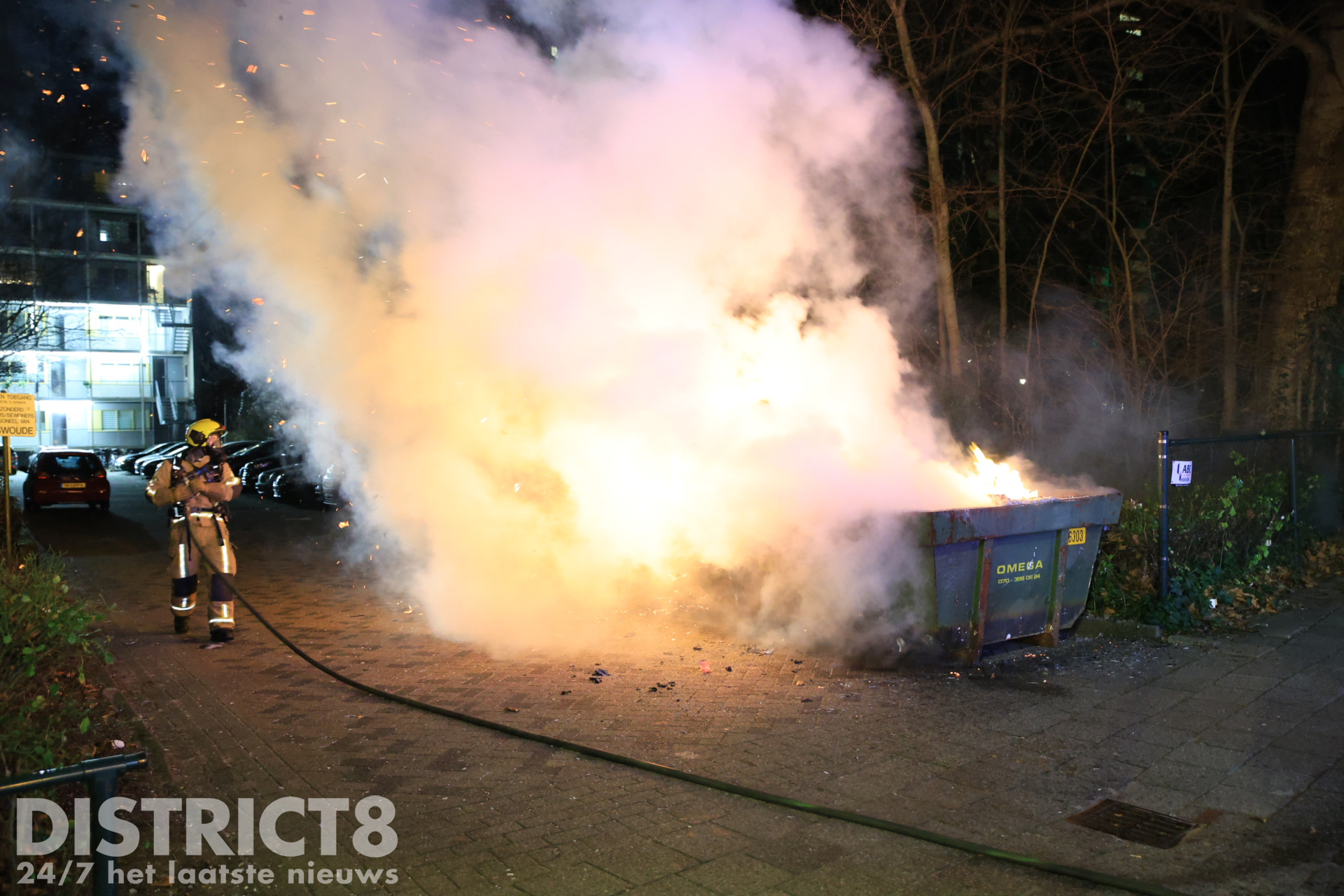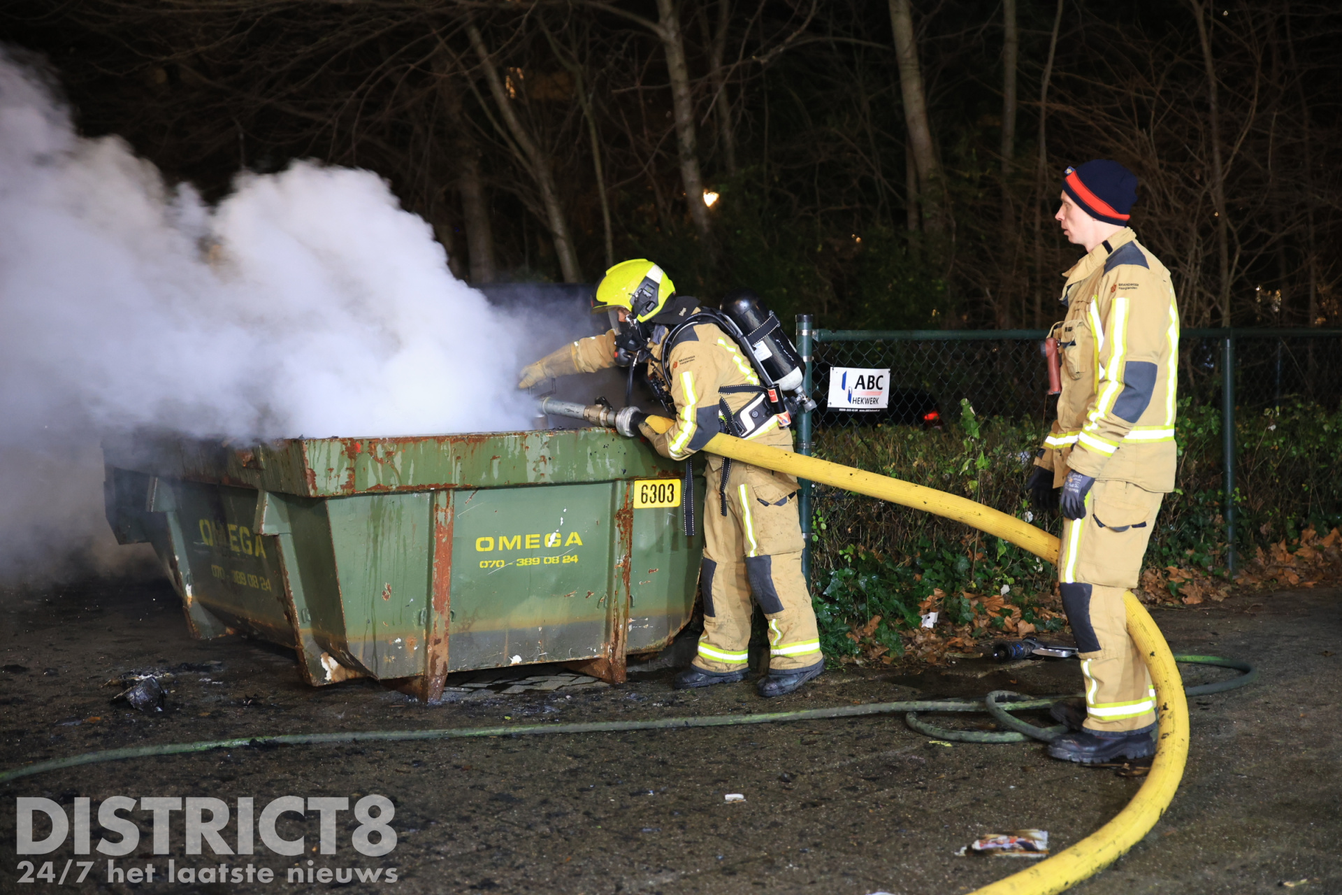 Delft – In de nacht van vrijdag 26 op zaterdag 27 december is brand gesticht in een afzetcontainer aan de Aart van der Leeuwlaan in Delft. De container was gevuld met grofvuil, dat snel vlam vatte. Bij het blussen van de brand kwam veel rook vrij.