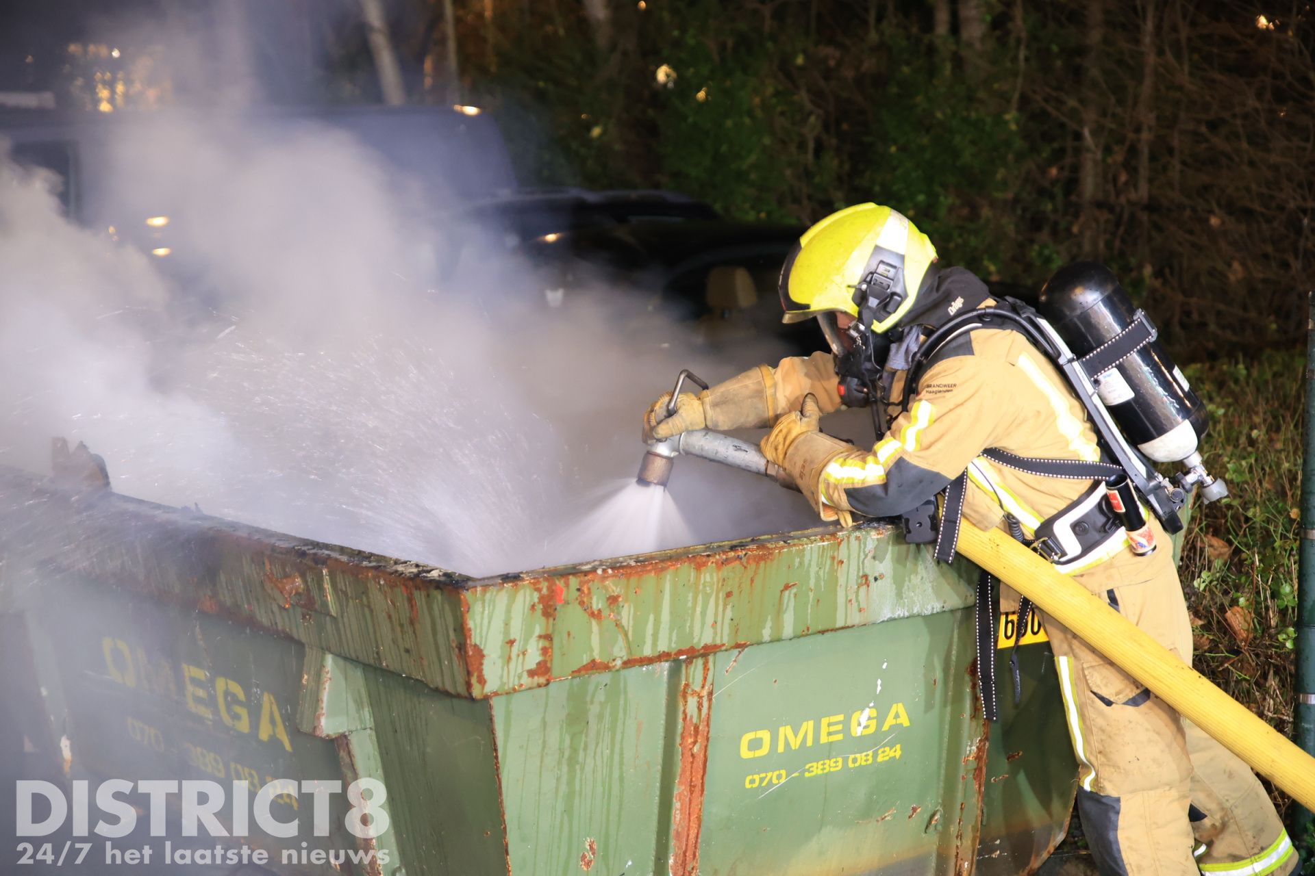De brandweer kwam ter plaatse om het vuur te bestrijden. De brandweerlieden hebben de inhoud van de container uit elkaar getrokken en afgeblust om de brand volledig te doven.