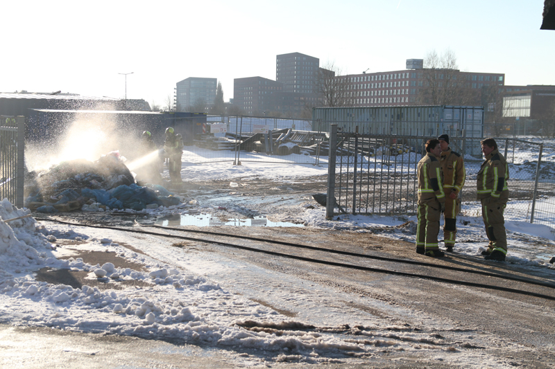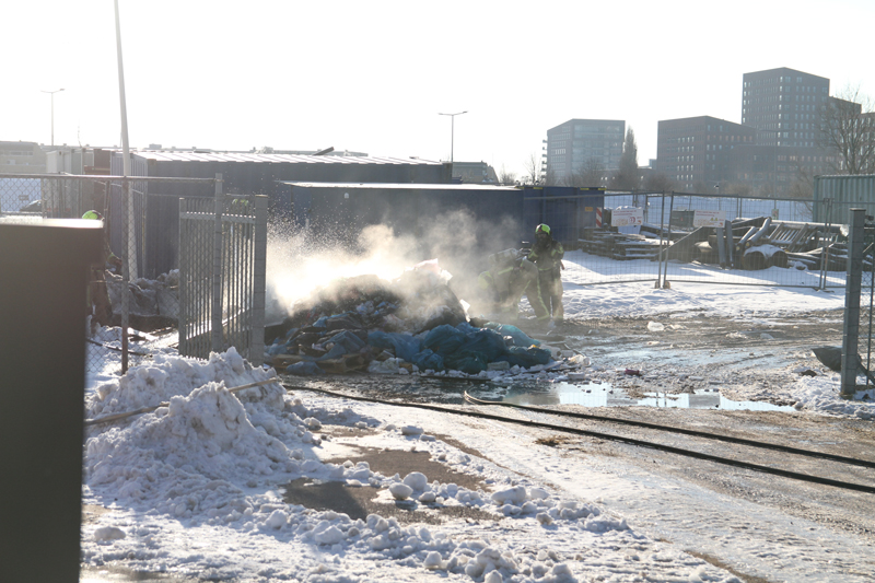 De brandweer kwam ter plaatse om de berg afval te blussen. De brandweer schaalde op naar ‘middelbrand’ vanwege de inzet van twee tankautospuiten.