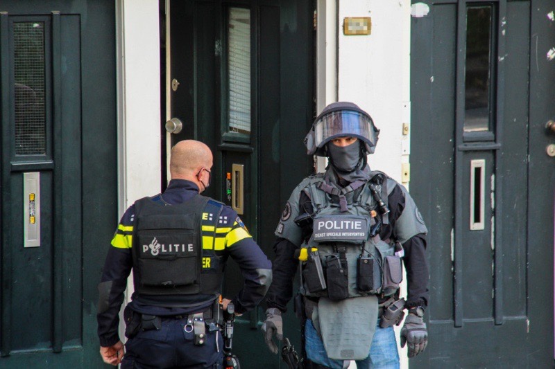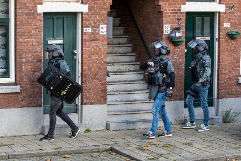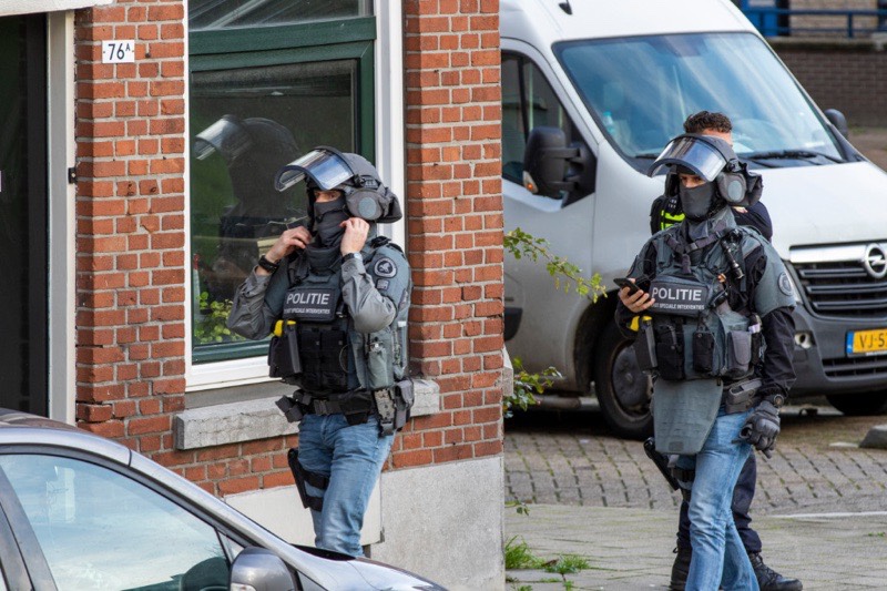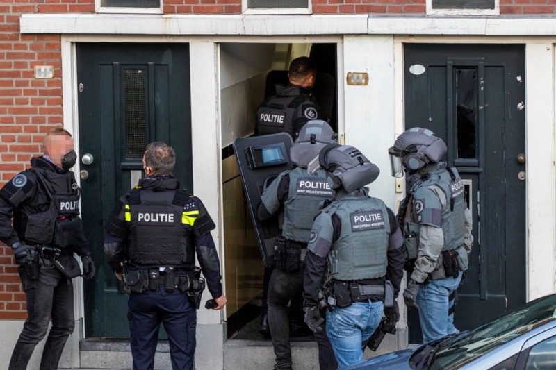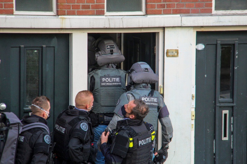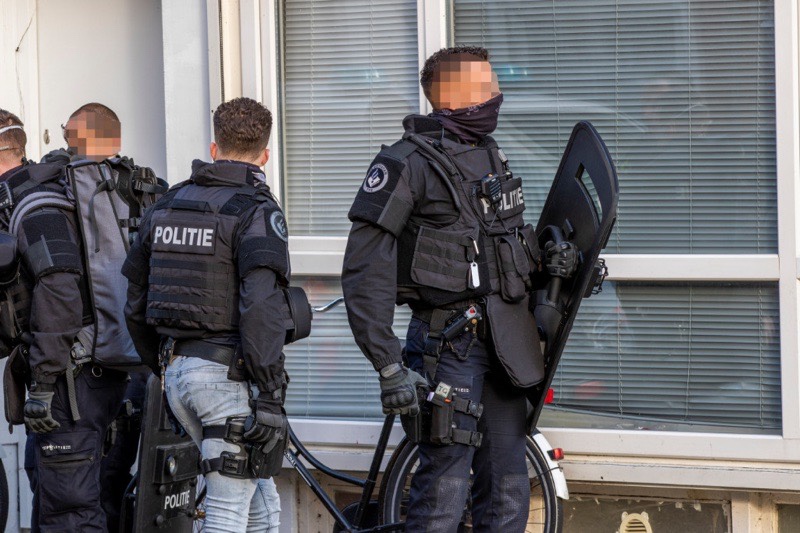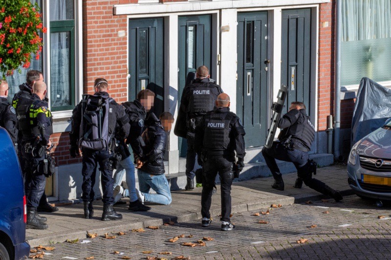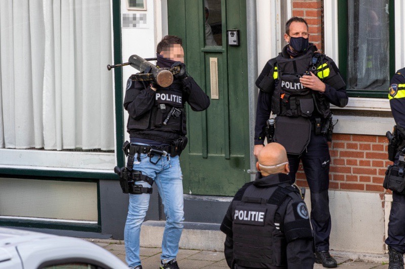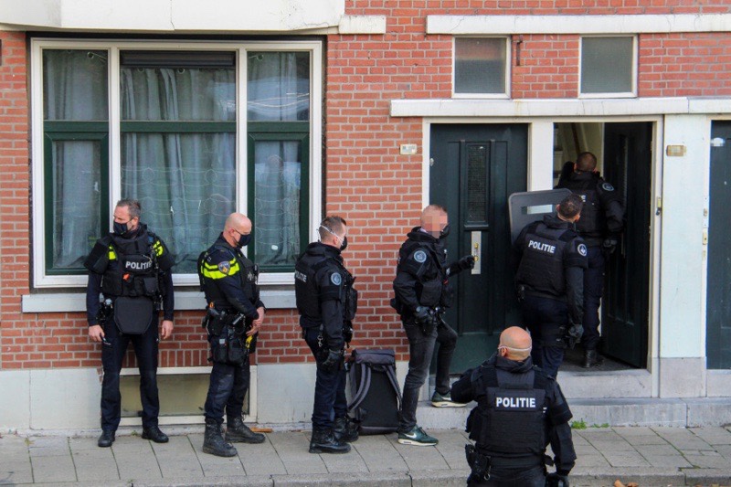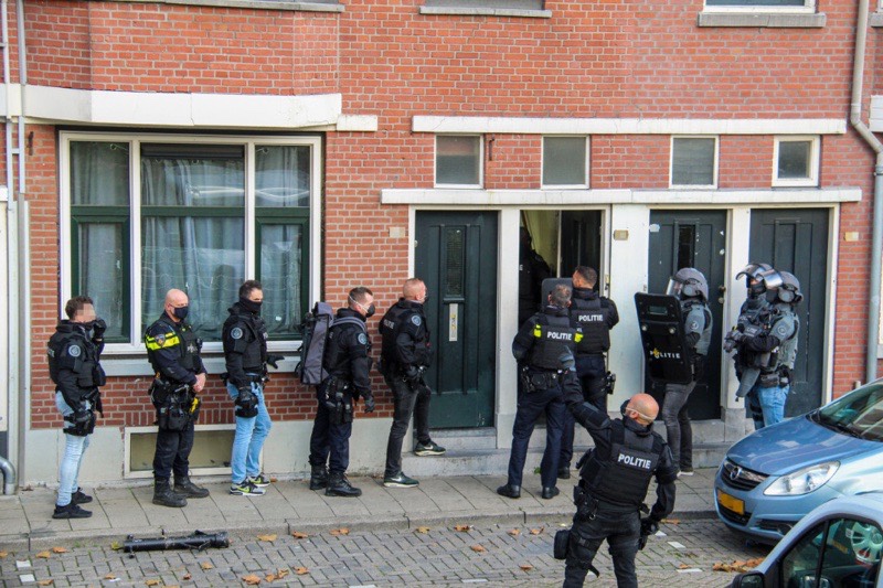 Het TPE (Team Parate Eenheid) stond klaar om in te grijpen toen de gezochte persoon ineens naar buiten kwam. Hij is direct aangehouden. Het TPE is daarna samen met het RRT (Rapid Response Team) van de DSI de woning binnen gegaan op zoek naar nog meer personen.