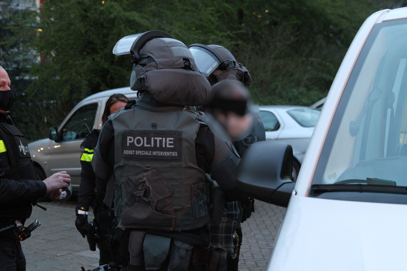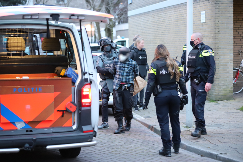 In de woning werd één persoon aangehouden, waarna de politie een onderzoek gestart is in de betreffende woning. De aangehouden verdachte kreeg zakken om de handen om eventuele sporen veilig te stellen en is overgebracht naar een politiebureau.