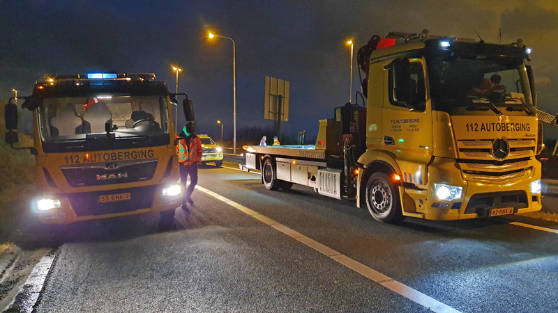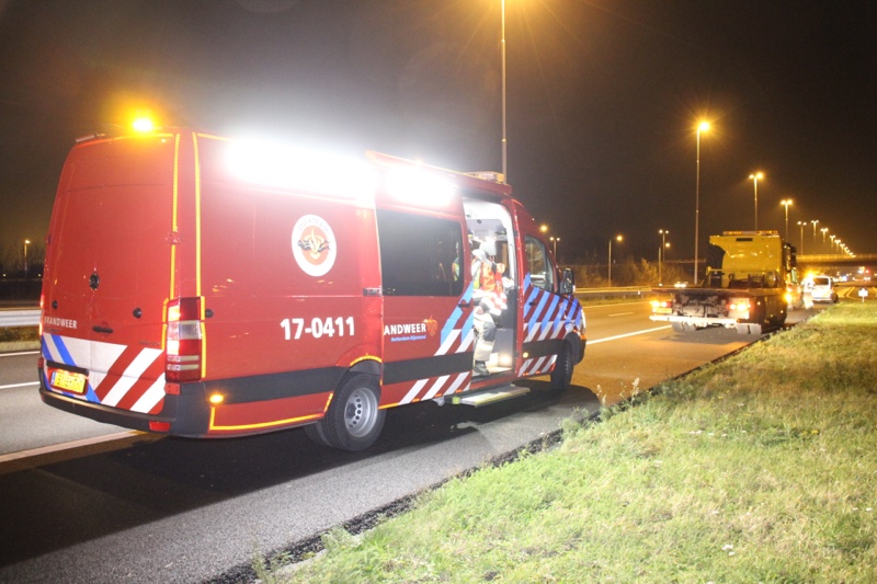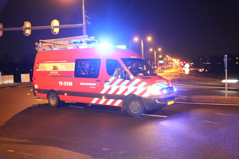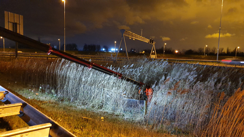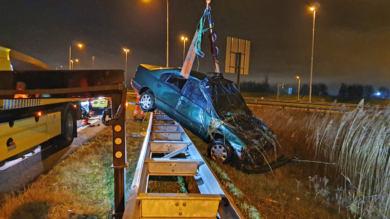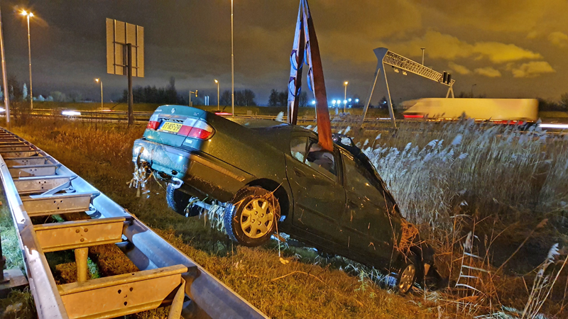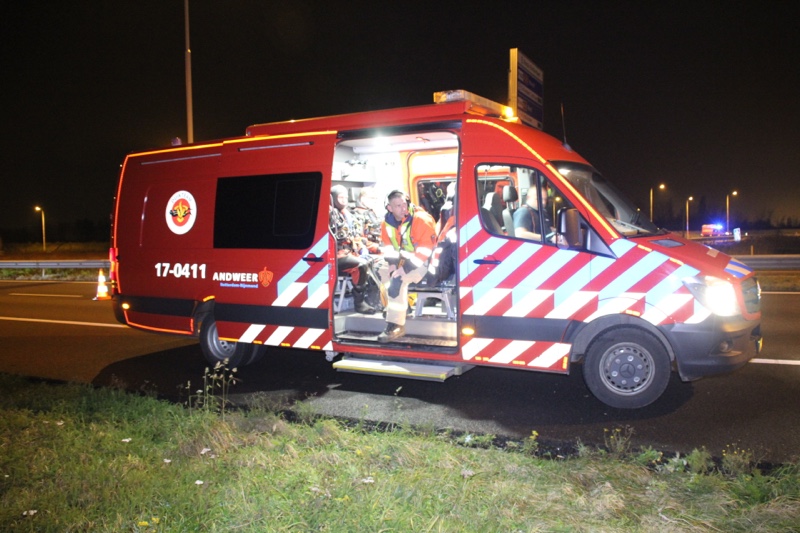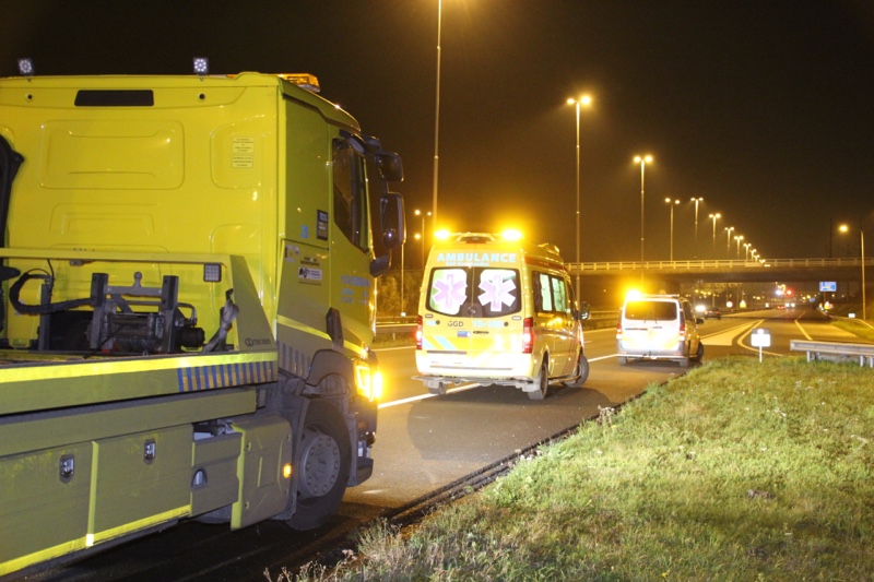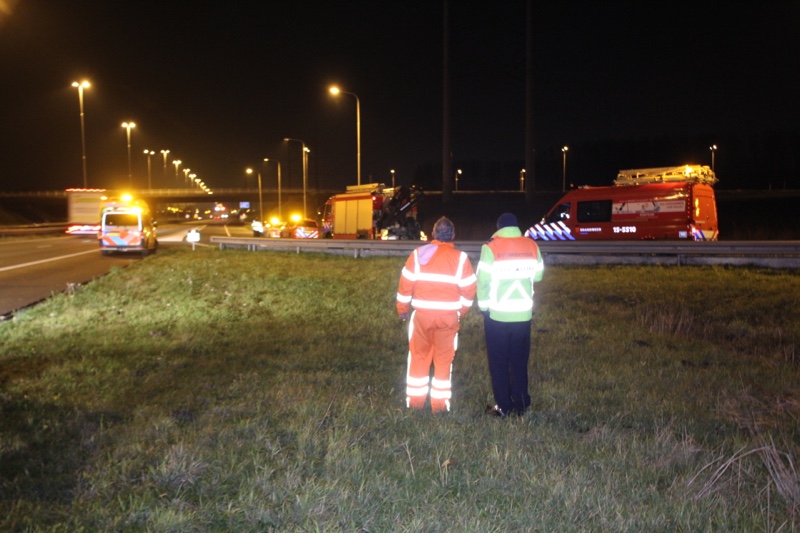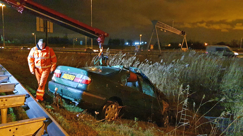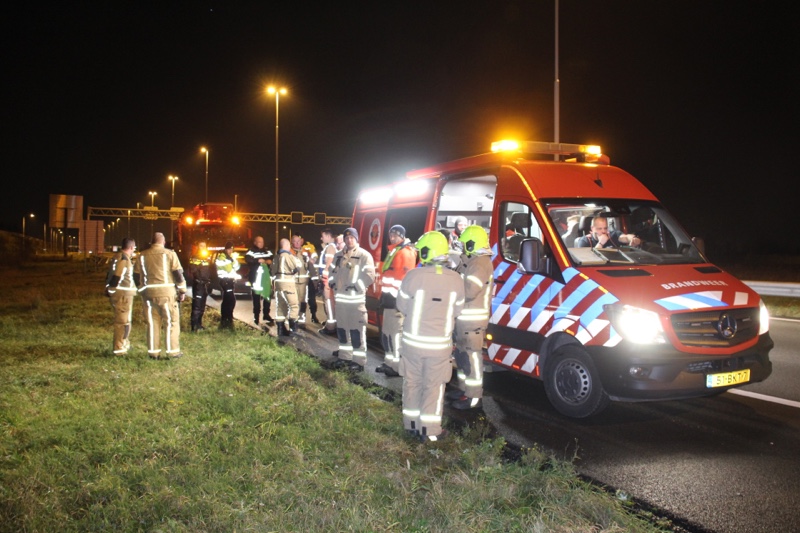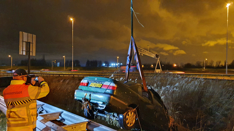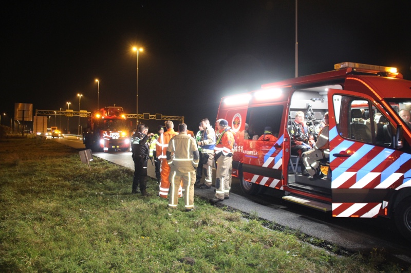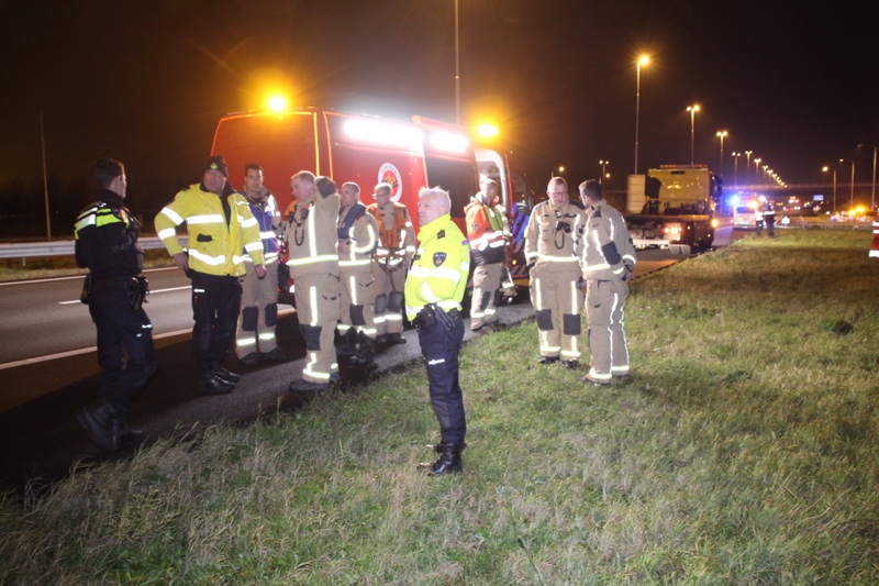 Een vrouw liep midden op de snelweg en hield een passerende auto staande. De vrouw was kletsnat en vertelde dat ze met haar auto te water was geraakt. Meteen zijn de hulpdiensten in grote getallen ter plaatse gekomen. Onder andere drie duikteams van de brandweer spoedde zich naar de snelweg. Negen brandweervoertuigen kwamen ter plaatse. De vrouw is door ambulancepersoneel behandeld en vervolgens naar het ziekenhuis vervoerd.