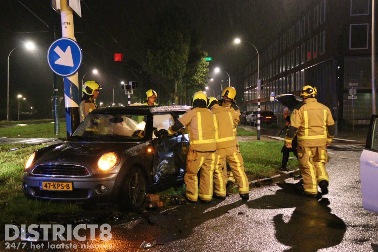 Op de kruising kwamen twee automobilisten met elkaar in botsing, waardoor de Mini tegen een verkeerspaal tot stilstand kwam. De politie, brandweer en drie ambulances kwamen ter plaatse. De bijrijdster van de Mini is door de brandweer uit het voertuig bevrijd. De brandweer heeft hiervoor onder andere de deur van het voertuig geknipt. In totaal zijn drie personen nagekeken door het ambulancepersoneel. Voor zover bekend zijn er twee personen naar het ziekenhuis vervoerd.