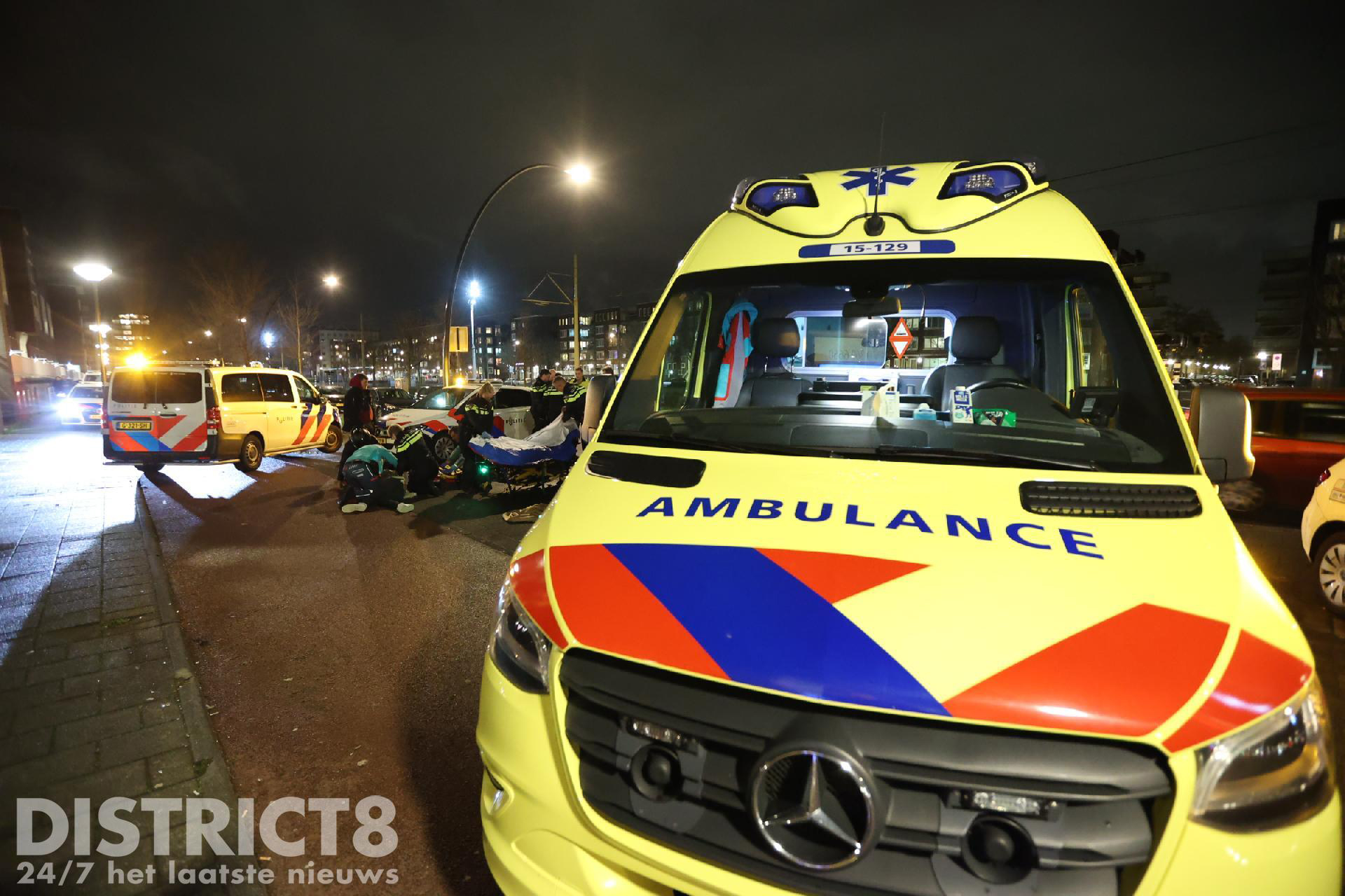 Het slachtoffer is na onderzoek in de ambulance overgebracht naar het ziekenhuis. De politie doet onderzoek.