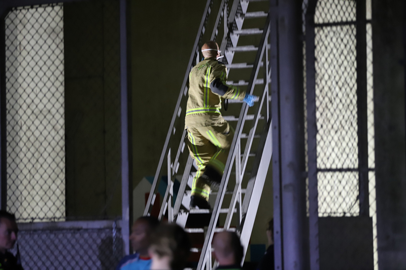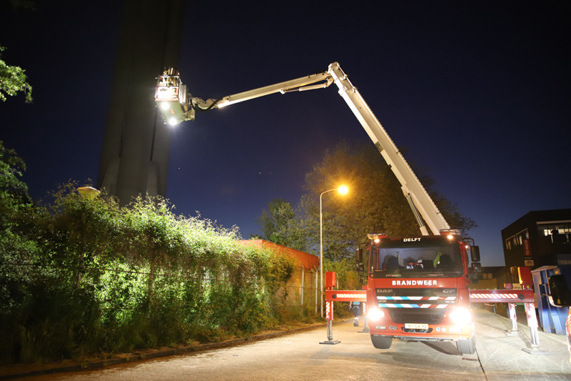 De brandweer moest het toegangshek forceren om op het terrein te komen. Eenmaal aangekomen bij de centrale kon het klimmen beginnen. Via een smalle trap konden de hulpdiensten zestig meter omhoog klimmen.