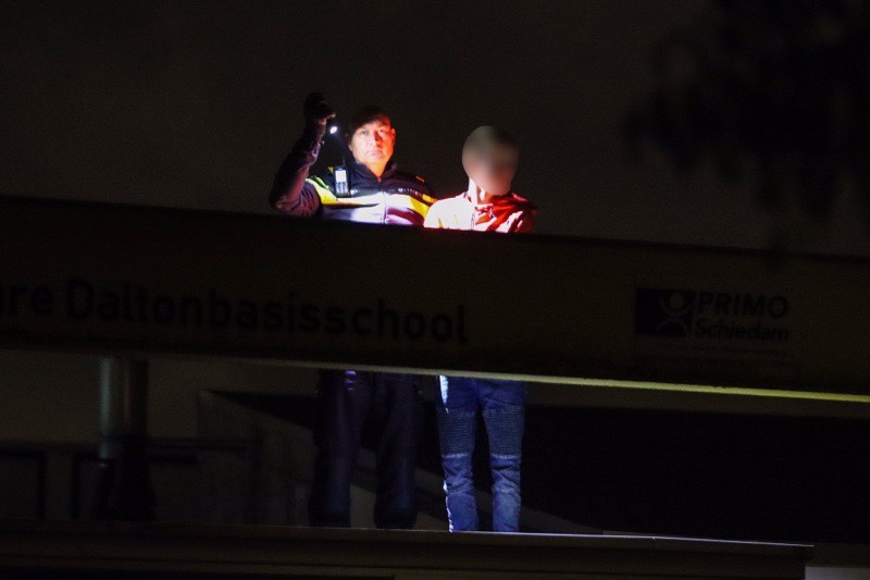 Schiedam – Bewoners zagen vrijdagavond jongeren op het dak lopen van een school aan de Bernardus IJzerdraatsingel.