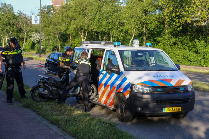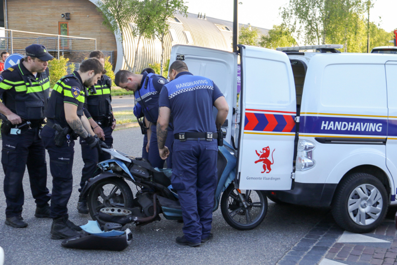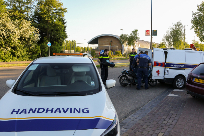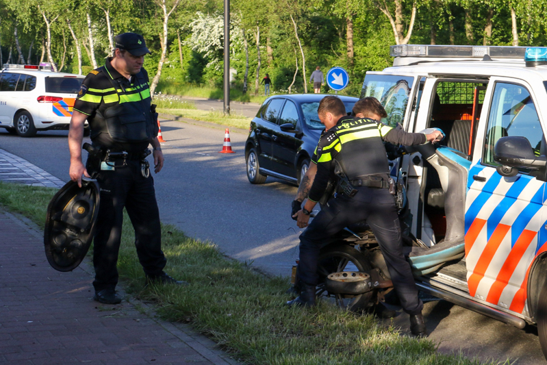 De politie wilde de scooter meenemen maar deze paste niet in hun bus, handhaving kwam ter plaatse om de scooter mee te nemen. De auto is door een berger afgevoerd.