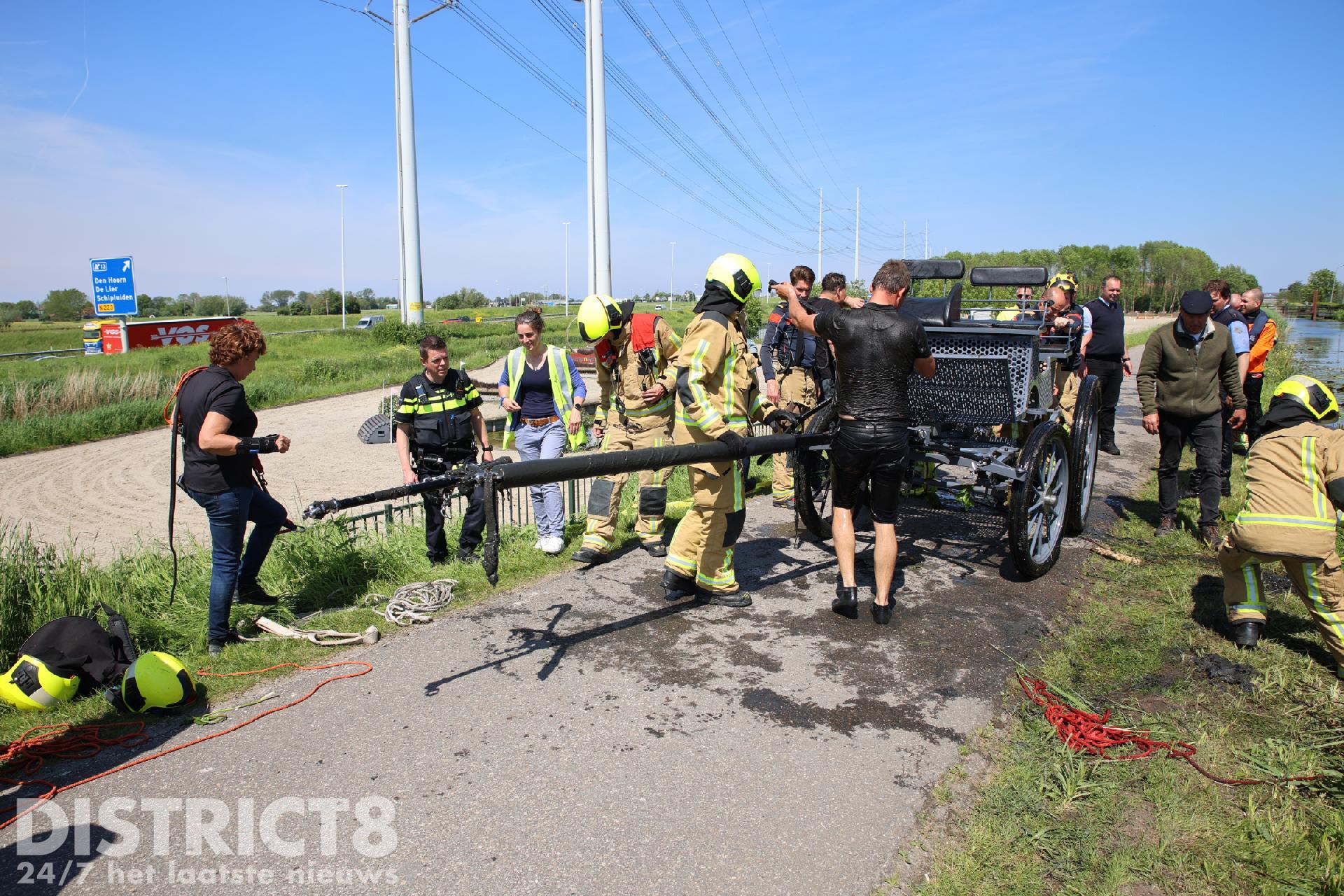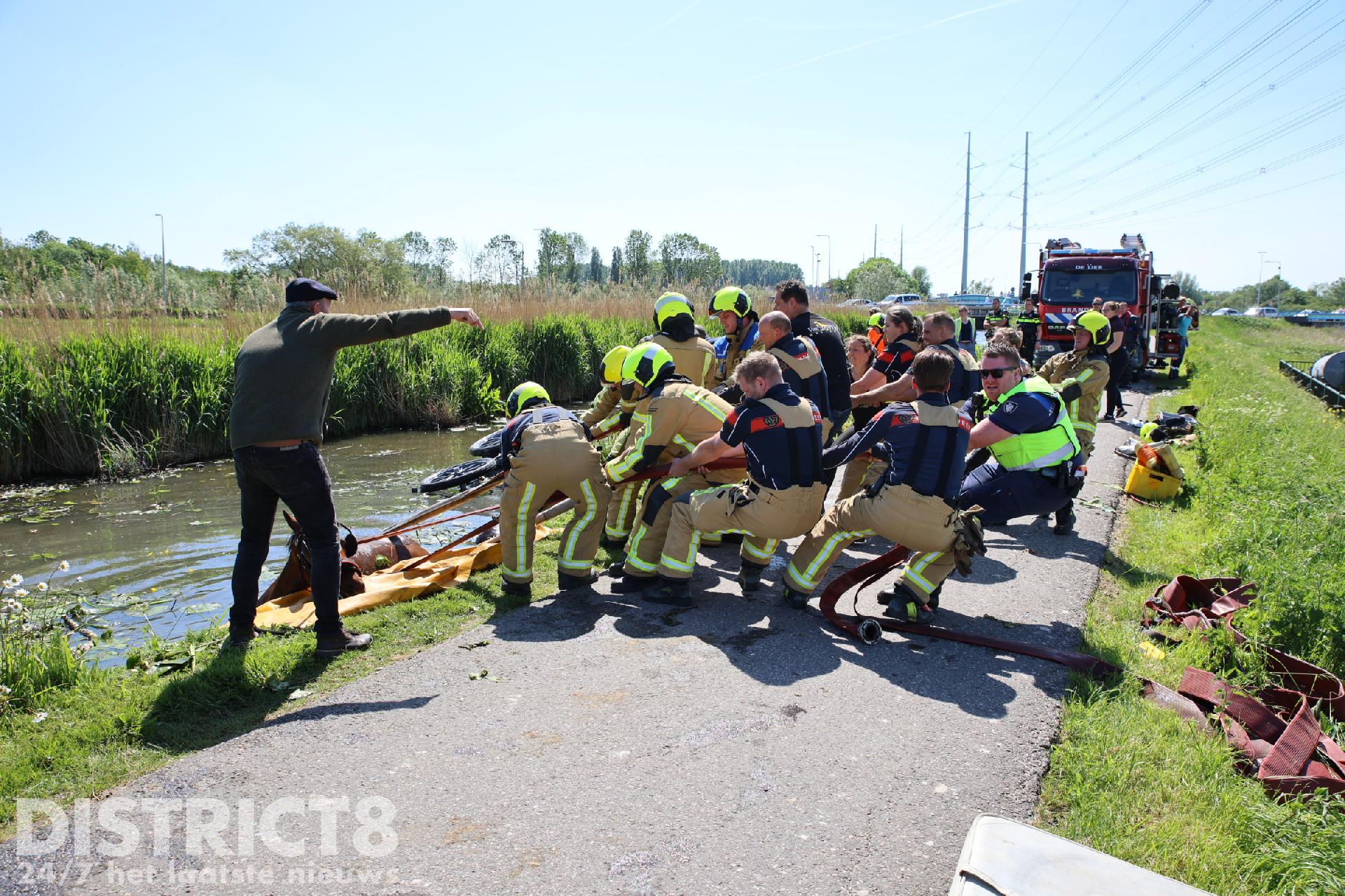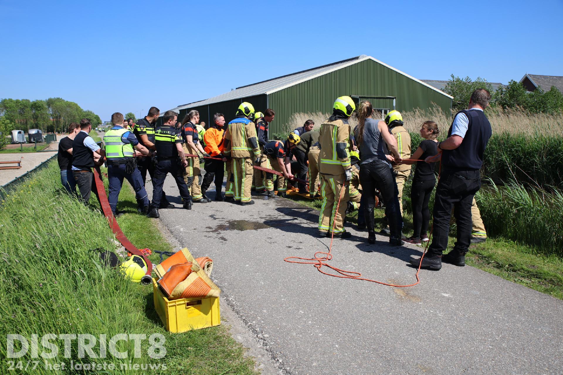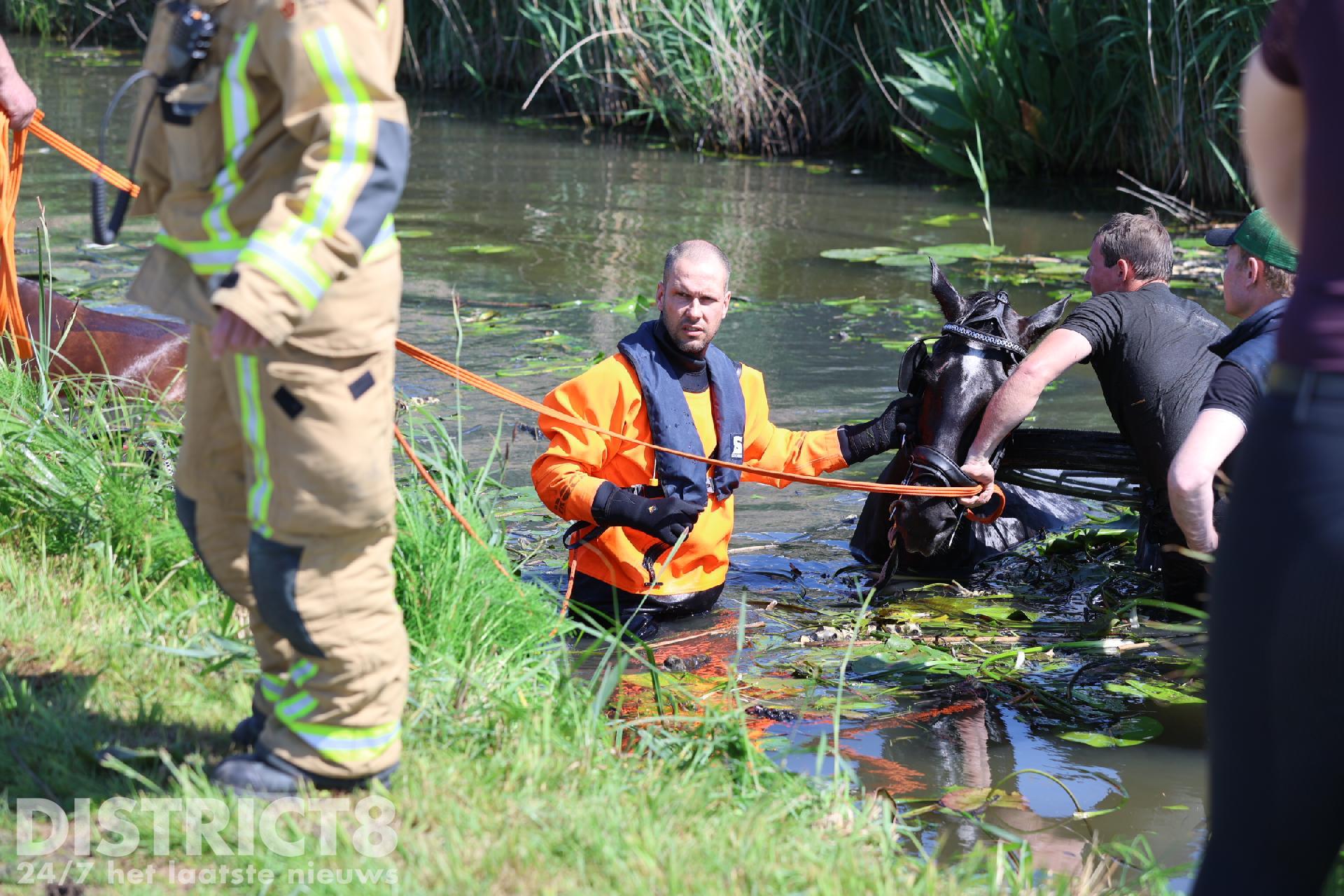 Direct daarop werden de hulpdiensten gealarmeerd, die opschaalden naar “Middel Hulpverlening”. Met meer dan 20 mensen werd met man en macht geprobeerd om de vier paarden zo snel en veilig mogelijk uit het water te halen. Binnen een uur waren alle paarden en de koets uit het water.