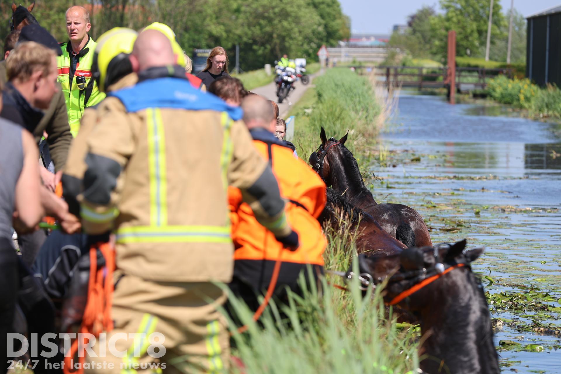 De paarden worden bij een nabijgelegen manege nagekeken door een veearts. De personen die in de sloot hebben gestaan om de paarden te helpen, worden ook nagekeken door ambulancepersoneel. Einde berichtgeving. https://t.co/S1GgpzEN0a