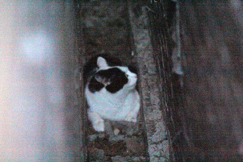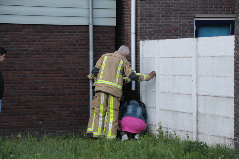 Hier kon het baasje de zichtbaar getraumatiseerde Baloe in haar armen sluiten en meenemen naar huis. Volgens hen is het niet de eerste keer dat een kat of poes tussen de muren valt.