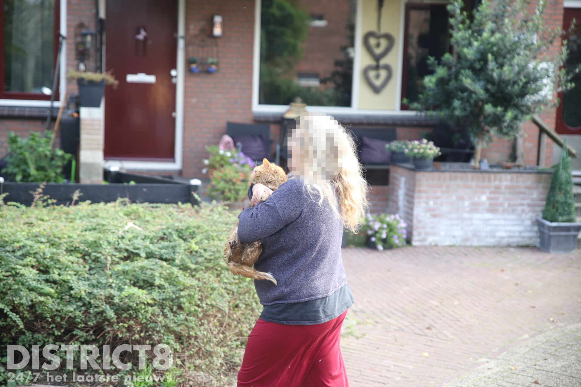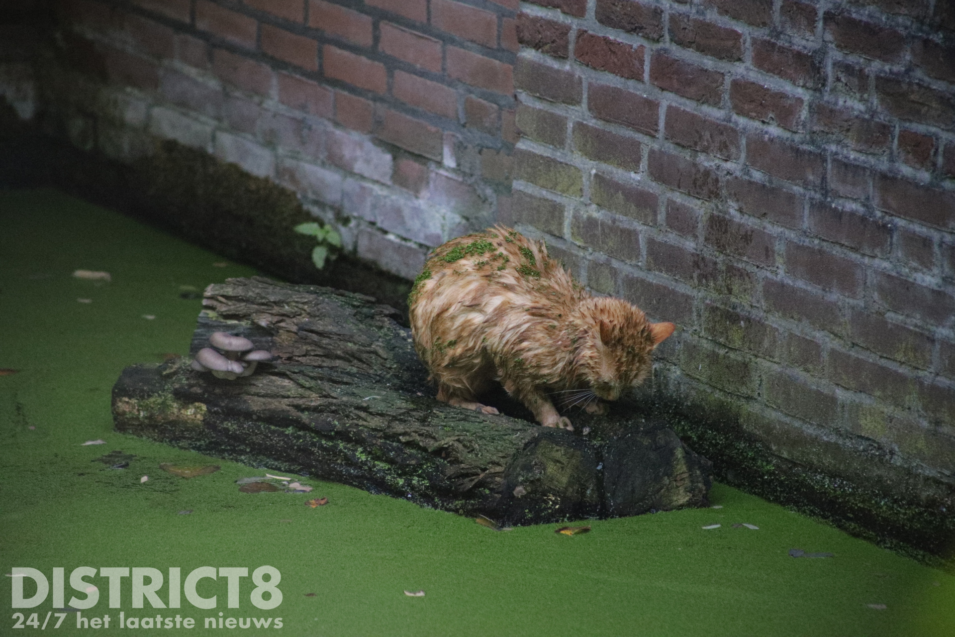 De kat sprong vervolgens zelf op de kant en verstopte zich in de bosjes. De eigenaresse van de kat kon hem uiteindelijk vangen en mee naar binnen brengen.