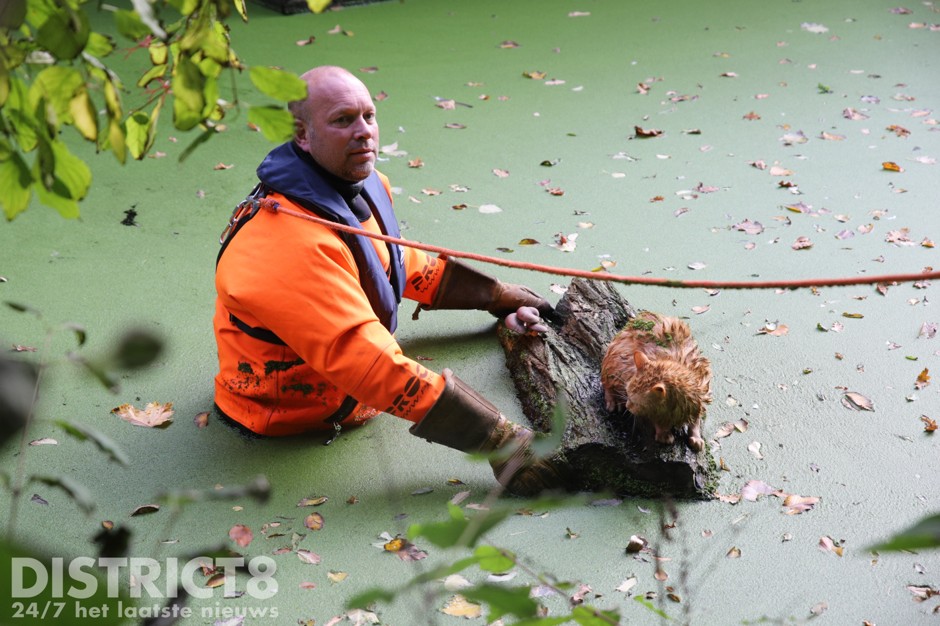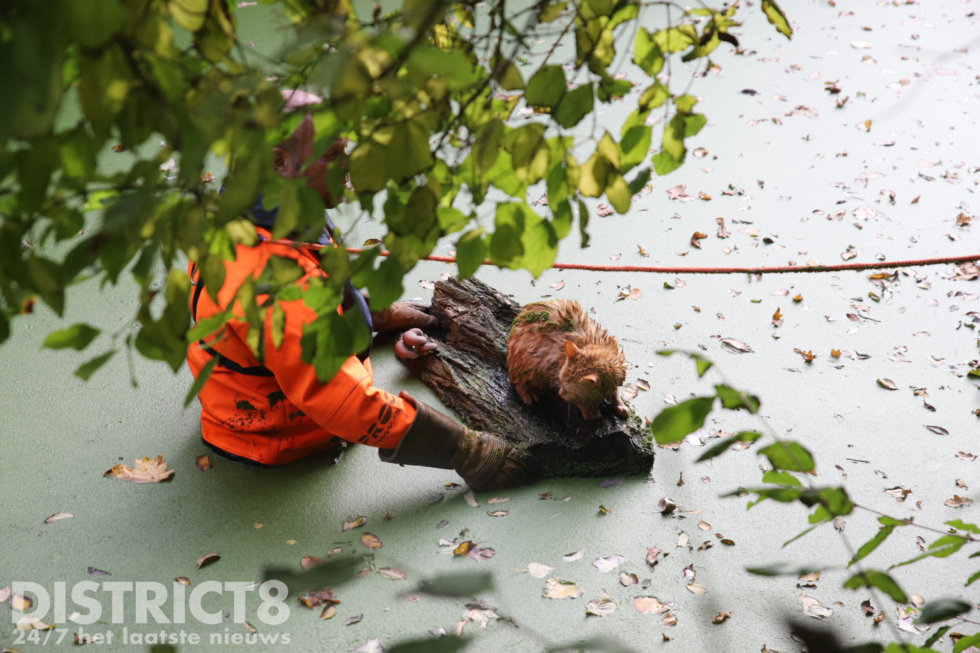 De brandweer kwam zonder spoed ter plaatse. Een van de brandweermannen is in een waterpak het water ingegaan en heeft de boomstronk met daarop de kat naar de kant gebracht.