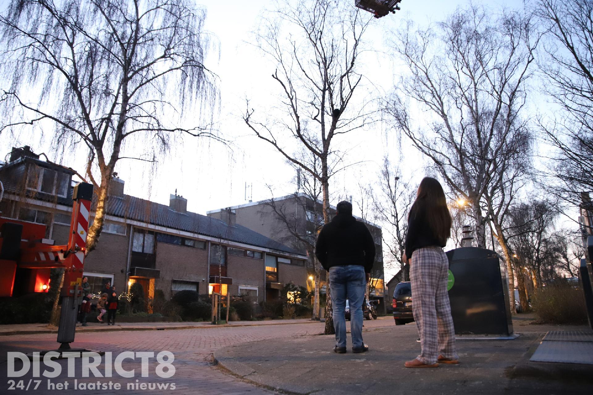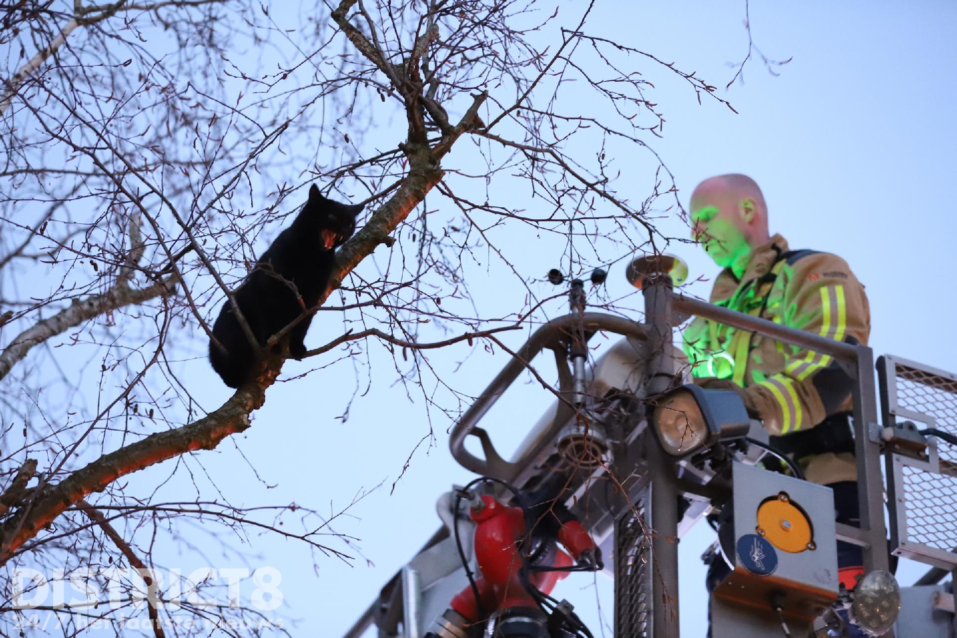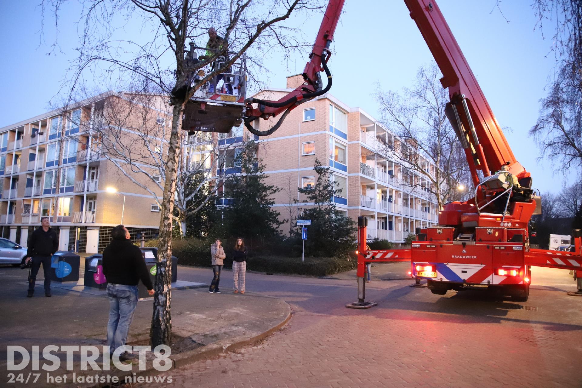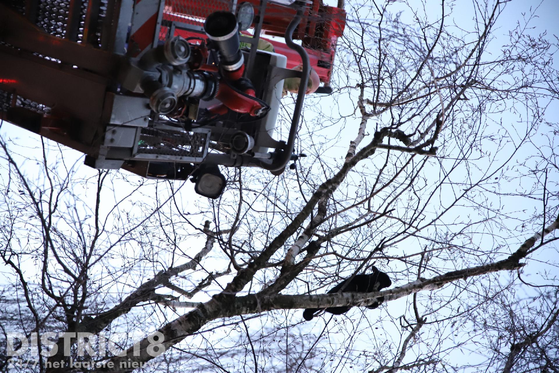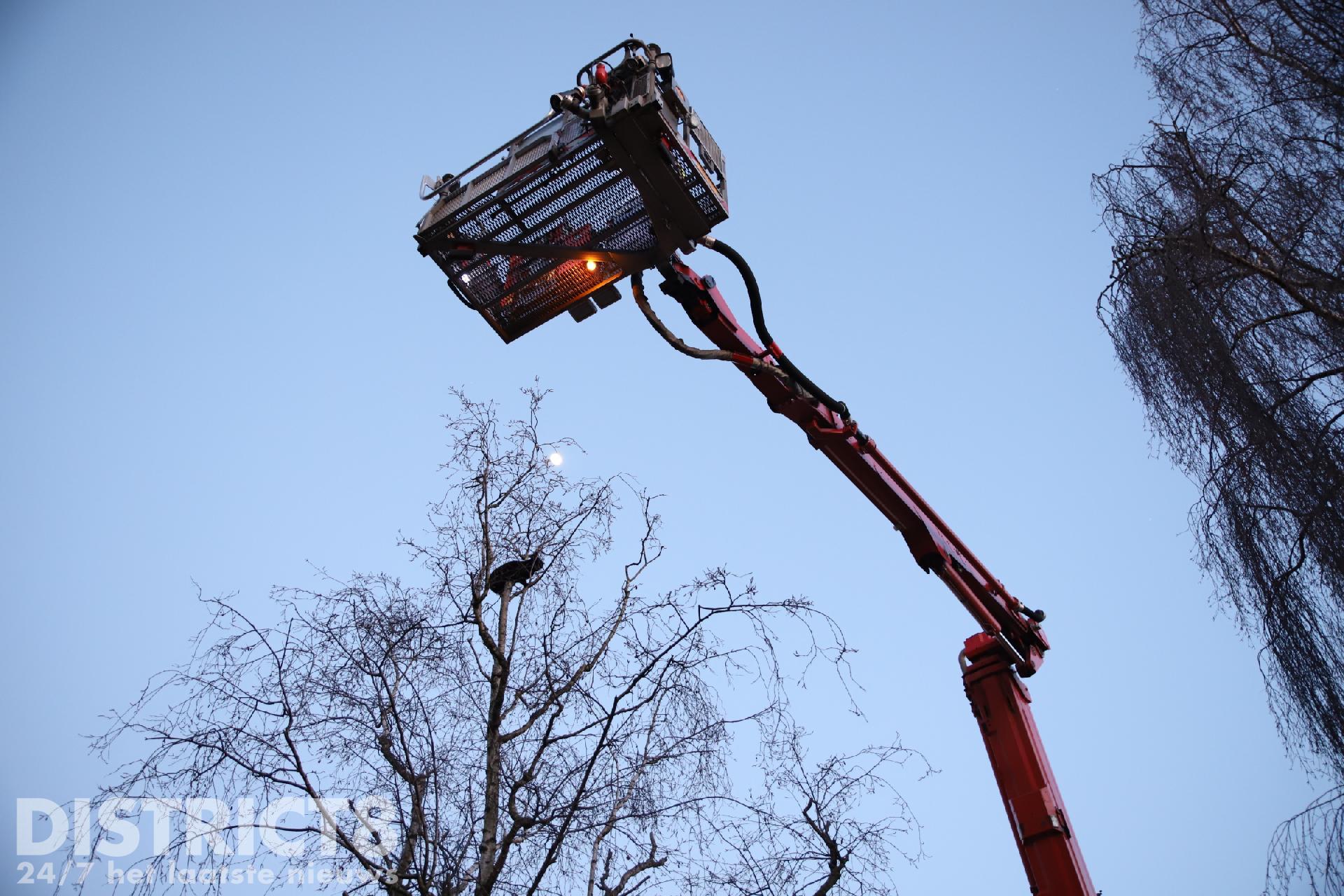 Leila was sinds gister vermist, de eigenaren van Leila zagen haar het eind van de middag in een boom zitten in hun straat, de Willem de Bijelaan in Voorburg. De brandweer is met een hoogwerker ter plaatse gekomen.