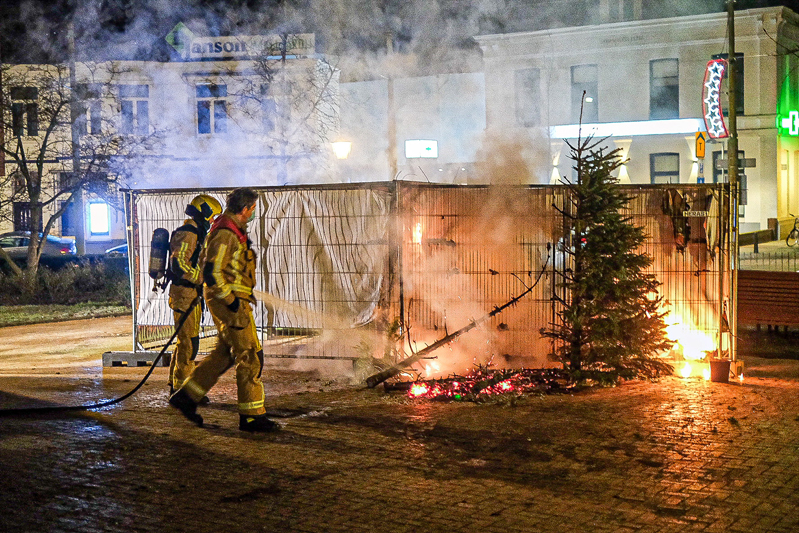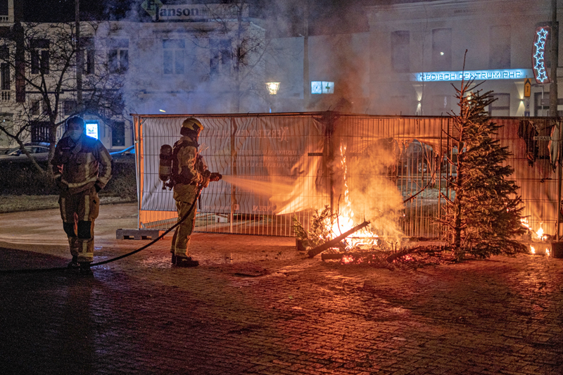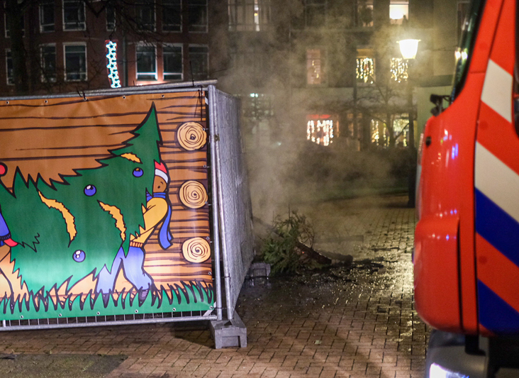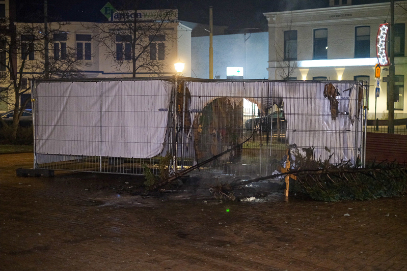 Op het plein stonden een aantal kerstbomen in brand en raakte ook een spandoek beschadigd . Volgens omstanders zouden de kerstbomen zijn aangestoken en is er hierna tenminste 1 persoon weggerend.