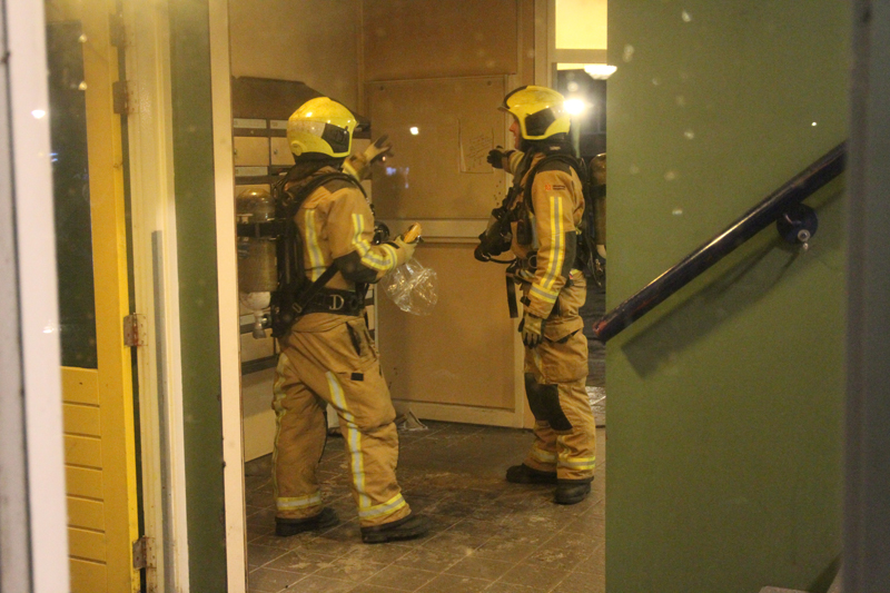 Even na vijf uur ontdekte een bewoner dat er in de hal en het trappenhuis van het complex een flinke rookontwikkeling zichtbaar was. Direct werden de hulpdiensten gebeld.