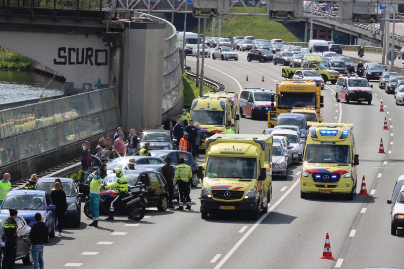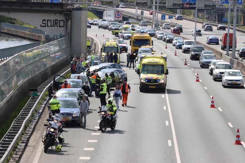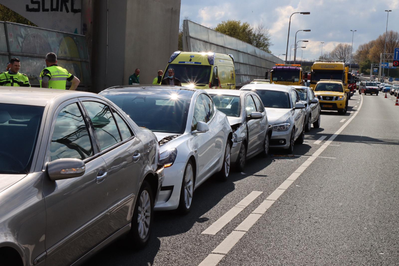 Rotterdam – Op de A20 in Rotterdam richting Gouda heeft zaterdagmiddag een kettingbotsing plaatsgevonden tussen ongeveer 15 auto’s.
