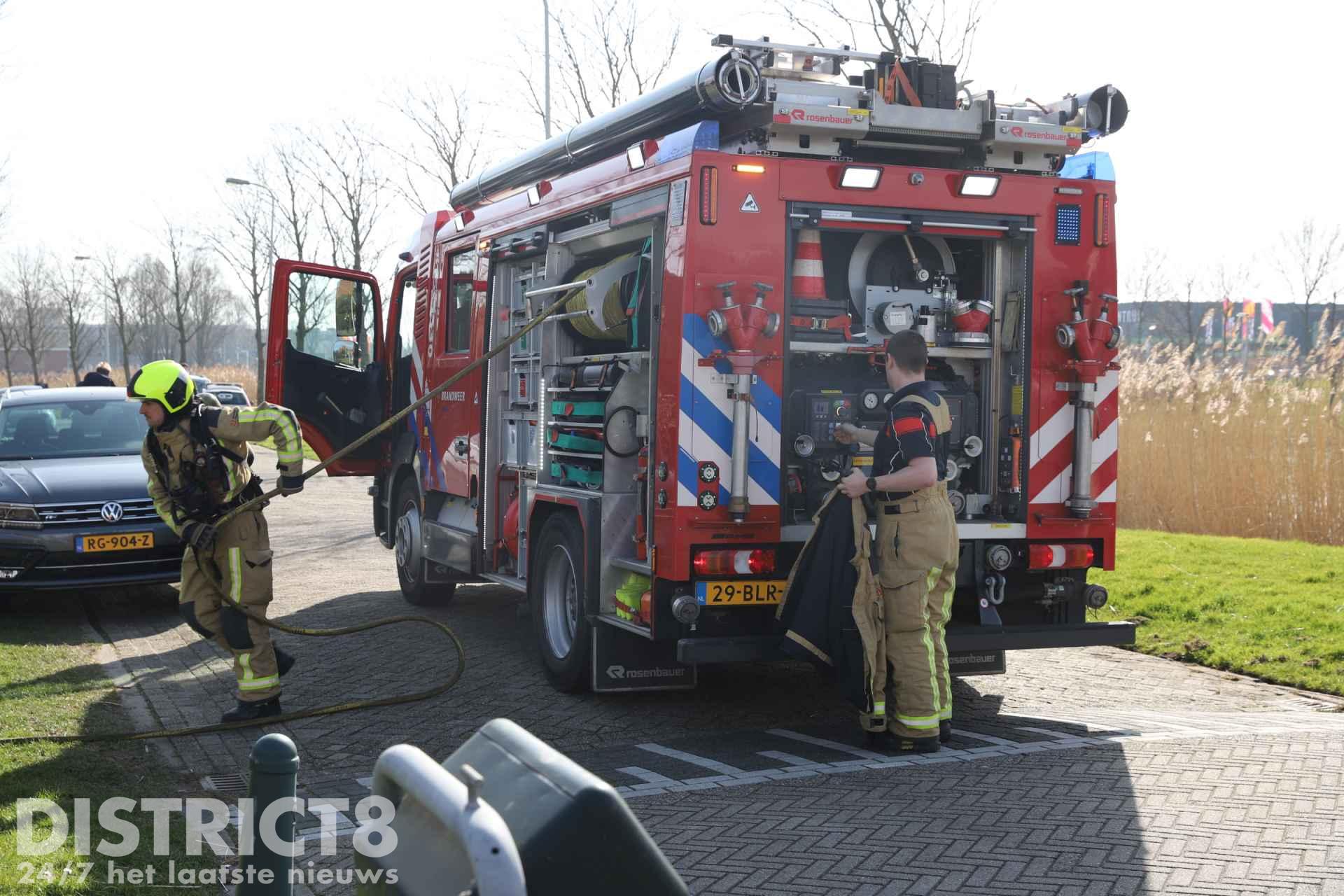 Rond half een kreeg de brandweer de melding en rukte met spoed uit. Twee tankautospuiten, een hoogwerker en een brandweermotor kwamen ter plaatse.