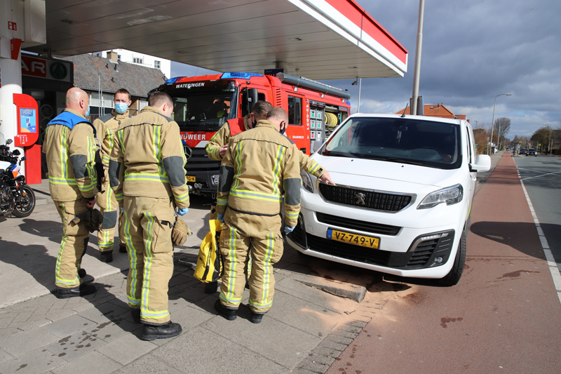 De brandweer heeft met absorptiekorrels een plas brandstof afgedekt wat lekte uit het busje. Een berger gaat de auto’s afslepen.